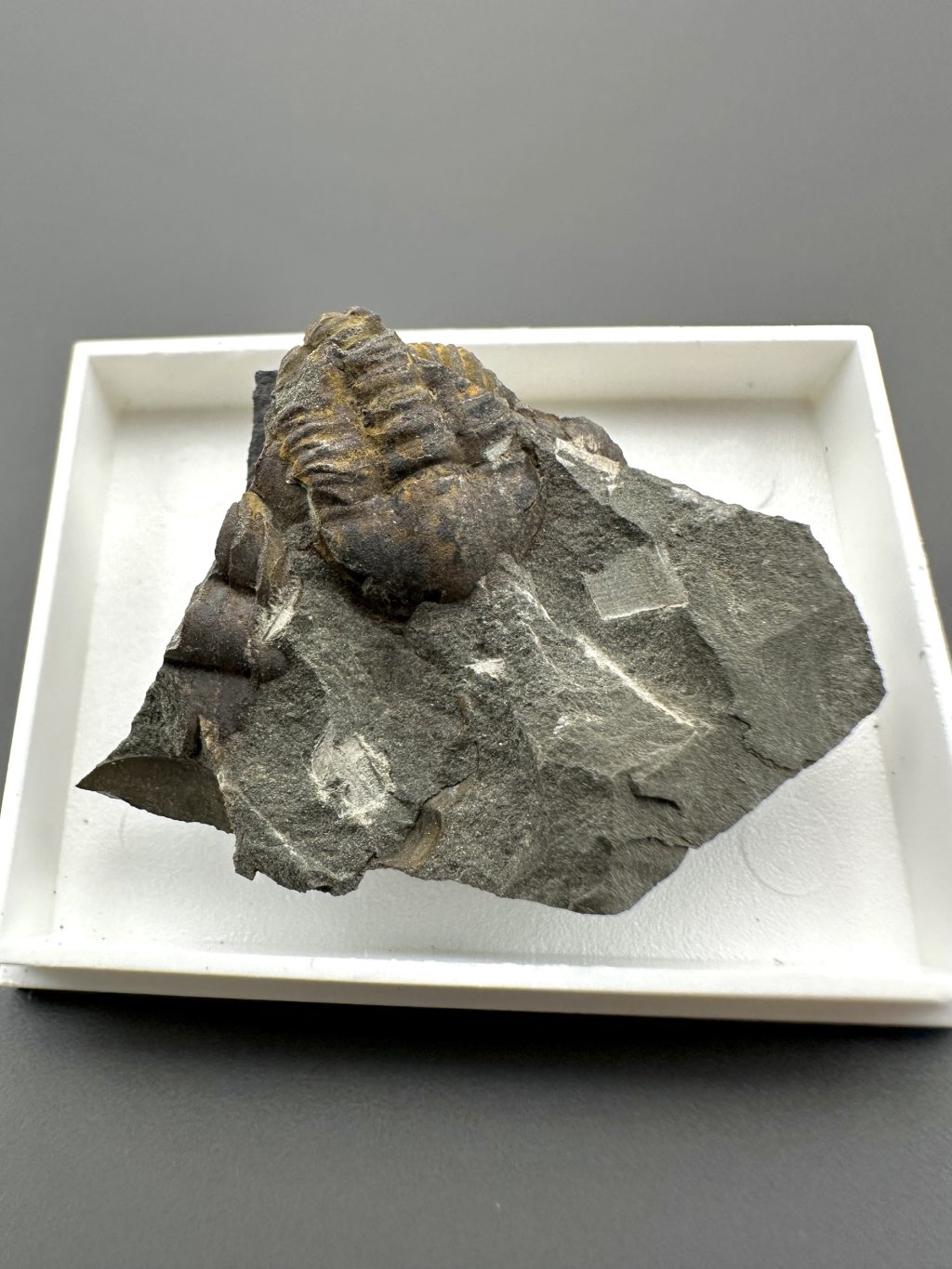 Trilobiten waren meeresbewohnende Gliederfüßer, die über einen Zeitraum von mehr als 270 Millionen Jahren die Weltmeere bevölkerten – vom frühen Kambrium bis zum Ende des Perms (etwa vor 521 bis 252 Millionen Jahren). Sie gelten als eine der ältesten und langlebigsten komplexen Lebensformen in der Erdgeschichte. Der Name „Trilobit“ stammt von der dreilappigen Körperstruktur („tri-lobit“ = drei Lappen), die aus einem Cephalon (Kopf), Thorax (Brustabschnitte) und Pygidium (Schwanzschild) besteht. Trilobitenfossilien sind weltweit verbreitet, doch einige Fundorte – wie das Barrandium in der Tschechischen Republik – gehören zu den bedeutendsten. Von hier stammt auch die bekannte Art Ellipsocephalus hoffi.