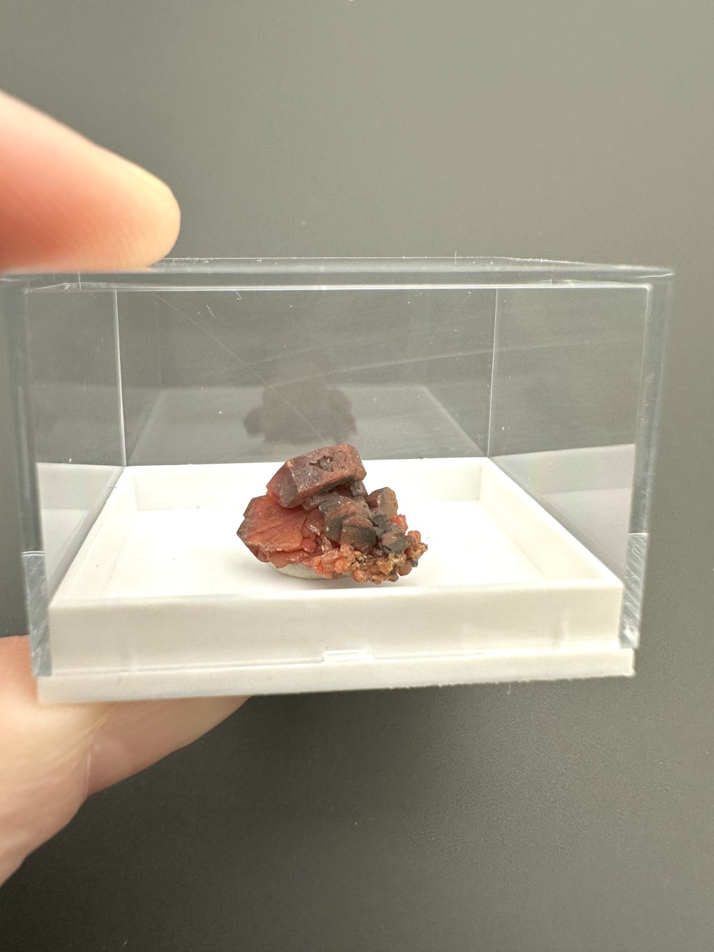 Vanadinit hat die chemische Formel Pb₅(VO₄)₃Cl, und seine Hauptbestandteile sind Blei, Vanadium und Chlor. Es enthält auch geringe Mengen an Phosphor und Arsen, das das Vanadium in seiner Struktur teilweise ersetzen kann. Es kommt typischerweise in Rot-, Orange-, Braun- und manchmal Gelbtönen vor. Die Farbe hängt vom Vanadium- und Spurenelementgehalt des Minerals ab. Vanadinit bildet hexagonale (sechseckige) Kristalle, die oft perfekt ausgebildet sind. Er kann auch sternförmige, körnige oder massive Aggregate bilden. Vanadinitkristalle haben einen hohen glasigen bis diamantartigen Glanz, der zu ihrem attraktiven Aussehen und ihrer Beliebtheit bei Mineraliensammlern beiträgt.
