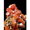 Vanadinit hat die chemische Formel Pb₅(VO₄)₃Cl, und seine Hauptbestandteile sind Blei, Vanadium und Chlor. Es enthält auch geringe Mengen an Phosphor und Arsen, das das Vanadium in seiner Struktur teilweise ersetzen kann. Es kommt typischerweise in Rot-, Orange-, Braun- und manchmal Gelbtönen vor. Die Farbe hängt vom Vanadium- und Spurenelementgehalt des Minerals ab. Vanadinit bildet hexagonale (sechseckige) Kristalle, die oft perfekt ausgebildet sind. Er kann auch sternförmige, körnige oder massive Aggregate bilden. Vanadinitkristalle haben einen hohen glasigen bis diamantartigen Glanz, der zu ihrem attraktiven Aussehen und ihrer Beliebtheit bei Mineraliensammlern beiträgt.