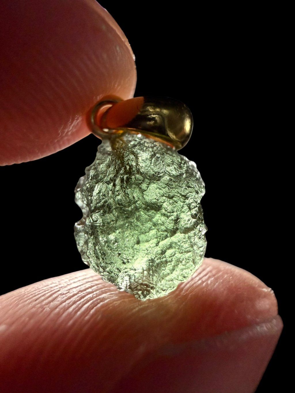Moldavit-Anhänger vergoldet mit 18 Karat Gold