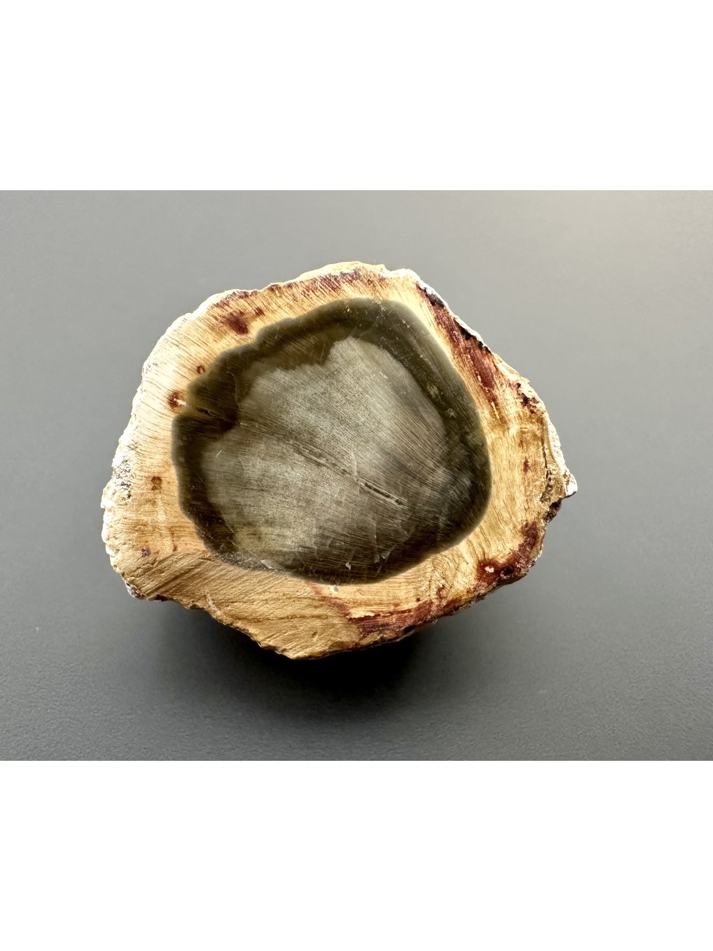 Fossilisierung: Der Prozess beginnt, wenn ein Baum fällt und schnell unter Sedimenten begraben wird, die ihn vor Zersetzung schützen. Mineralreiches Wasser sickert durch das Holz und Silikatminerale (wie Quarz, Chalcedon oder Opal) ersetzen allmählich das organische Material. Dieser Prozess wird als Permineralisierung bezeichnet.