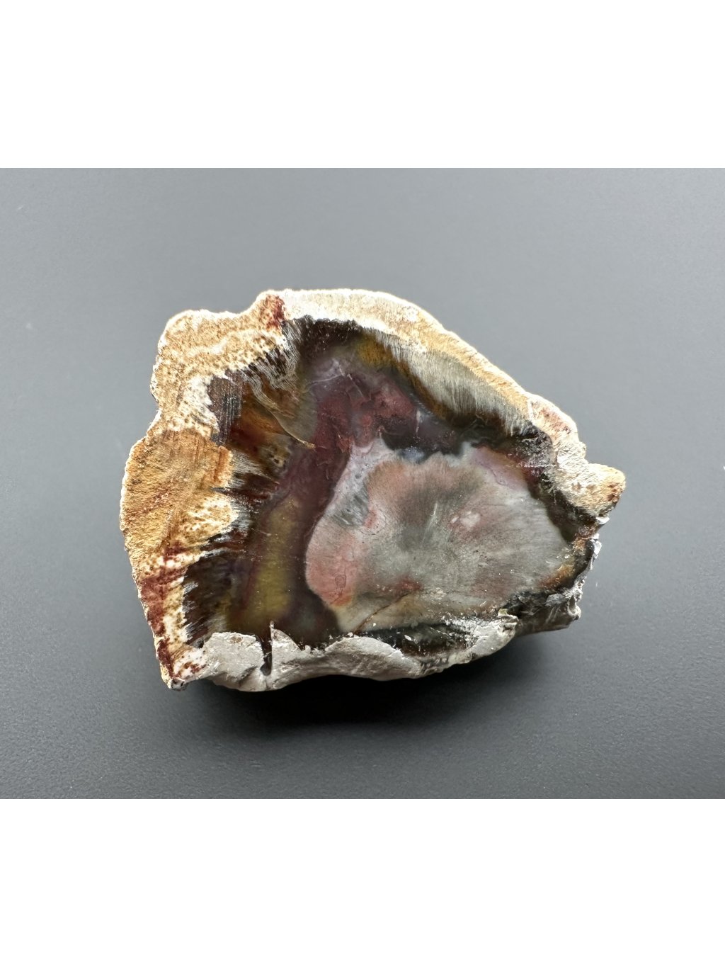 Versteinertes Holz, oft auch Araukarit genannt, ist eine versteinerte Form von Holz, bei der das organische Material durch Mineralien, hauptsächlich Quarz, ersetzt wurde, wobei die ursprüngliche Struktur des Holzes erhalten blieb. Dieser Prozess dauert Millionen von Jahren und führt zu einem wunderschön gefärbten Stein, der die Details des ursprünglichen Holzes beibehält. Der Name Araukarit stammt von Araukarie, einer der häufigsten Baumarten, die in dieser versteinerten Form vorkommen. Araucaria ist eine Baumgattung, die zur Gruppe der Nadelbäume gehört und in der Urzeit, insbesondere in der Trias und im Jura, weit verbreitet war.