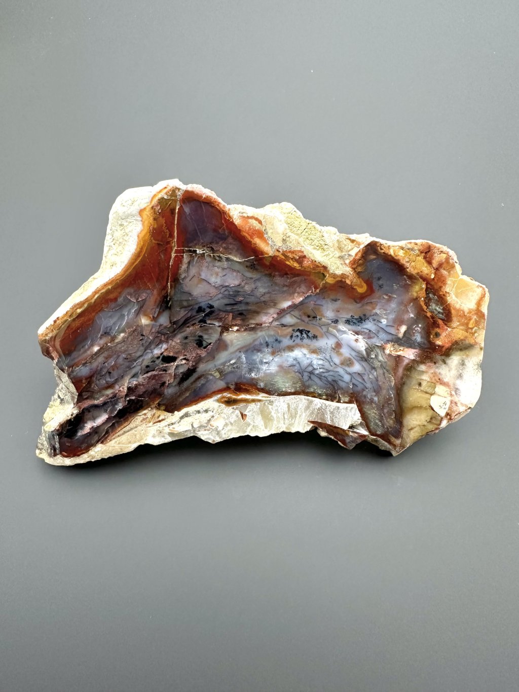 Versteinertes opalisiertes Holz mit natürlichem Kupfer – Westjava, Indonesien