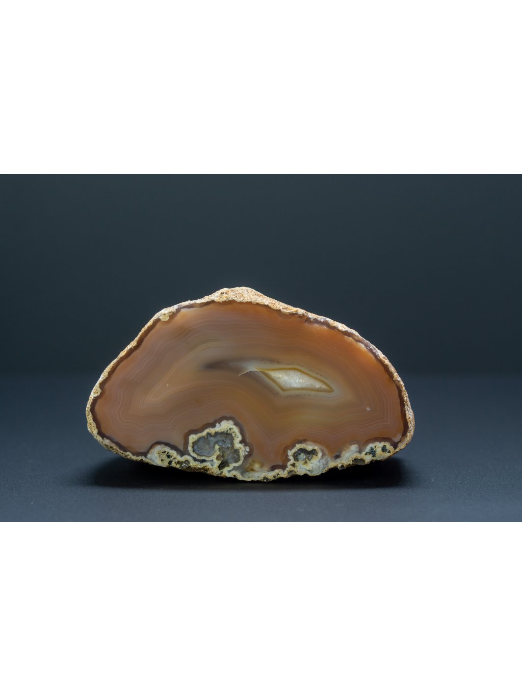 Brazilian agates are one of the most famous and widely used on the world market. They come mainly from areas of southern Brazil, such as the state of Rio Grande do Sul, where they are found in the cavities of old lava flows. Over time, these cavities were filled with silica-rich quartz solutions that gave rise to the layered chalcedony. Because of the relatively large size of the cavities, Brazilian agates can grow to considerable size, often with a well-developed crystalline interior.