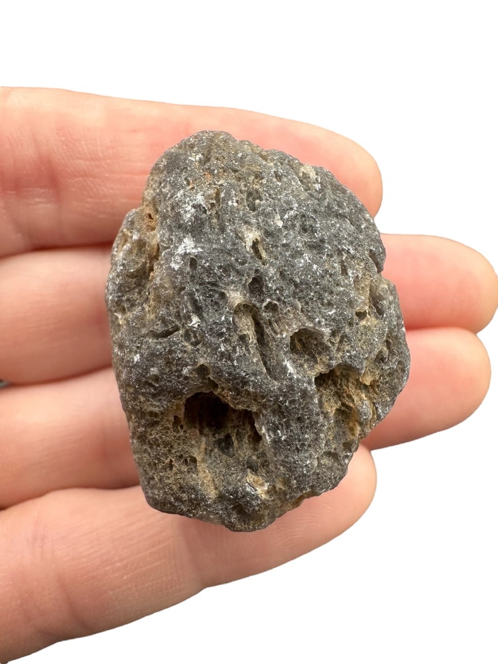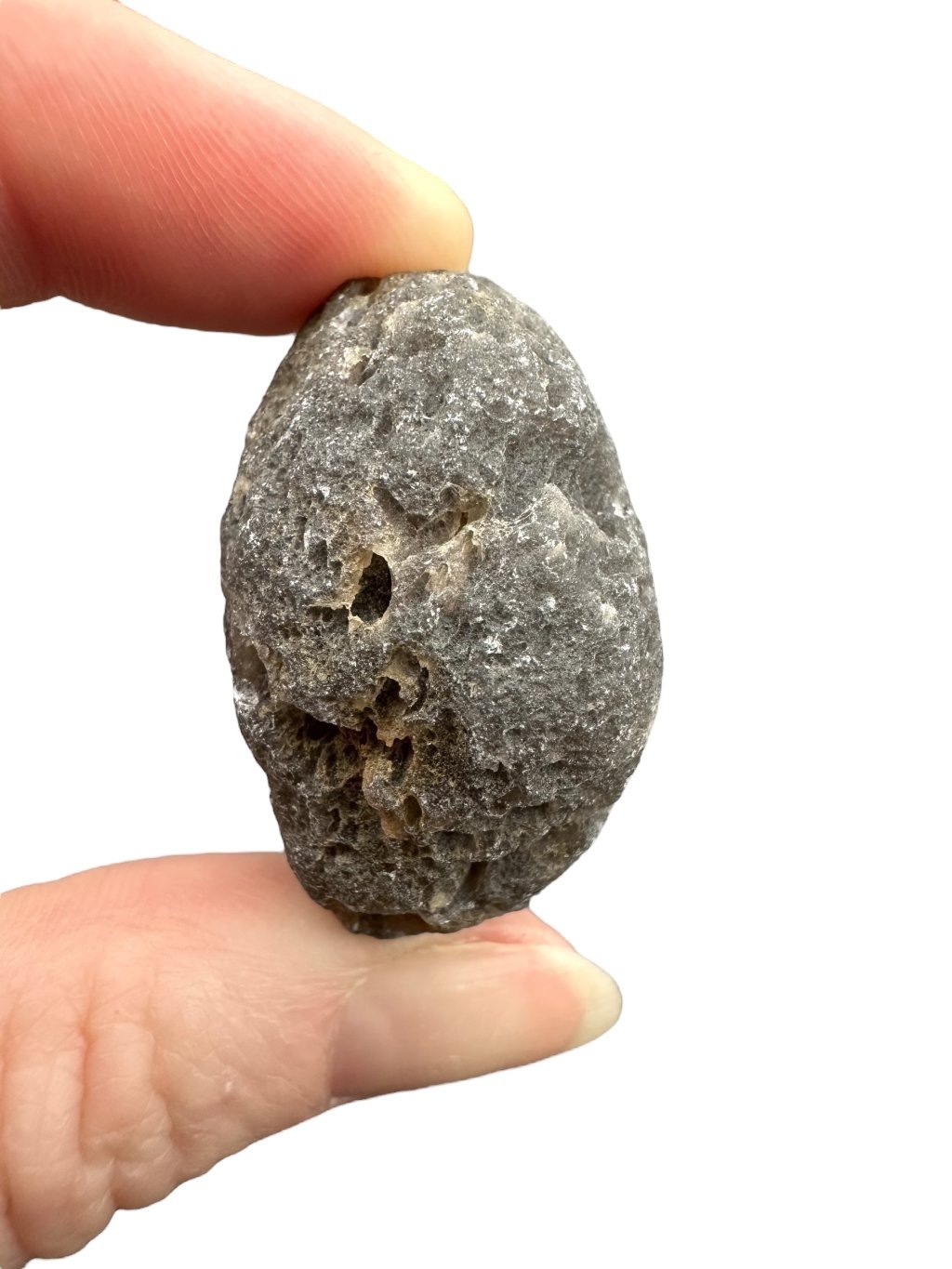 This stone has a dark, almost opaque color that ranges from gray to black. The surface can be glassy and textured, sometimes with tiny bubbles, which is typical of tektites.