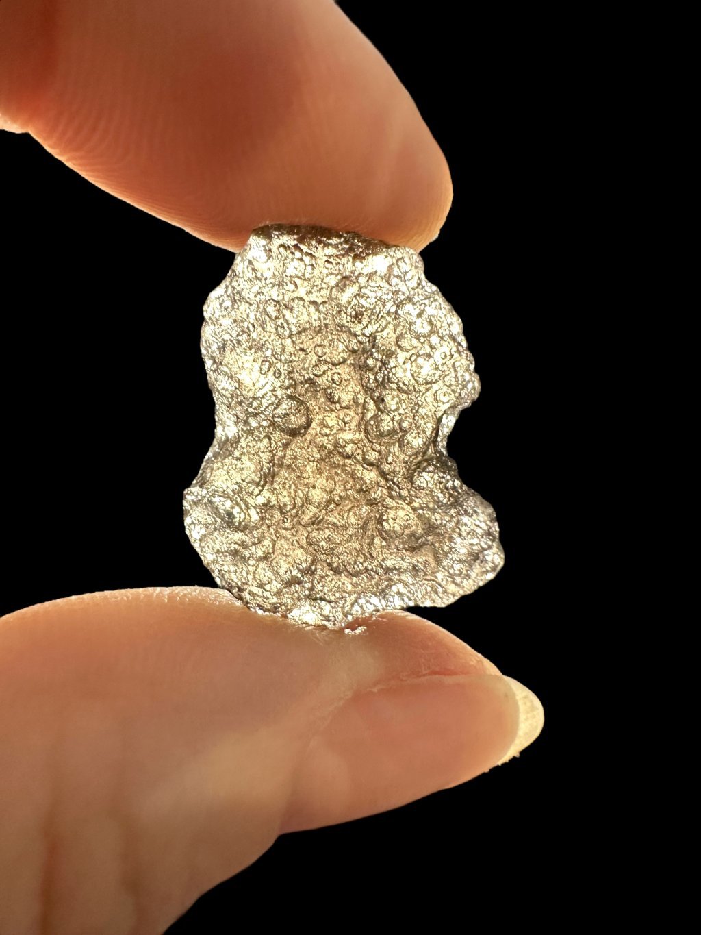 This stone has a dark, almost opaque color that ranges from gray to black. The surface can be glassy and textured, sometimes with tiny bubbles, which is typical of tektites.
