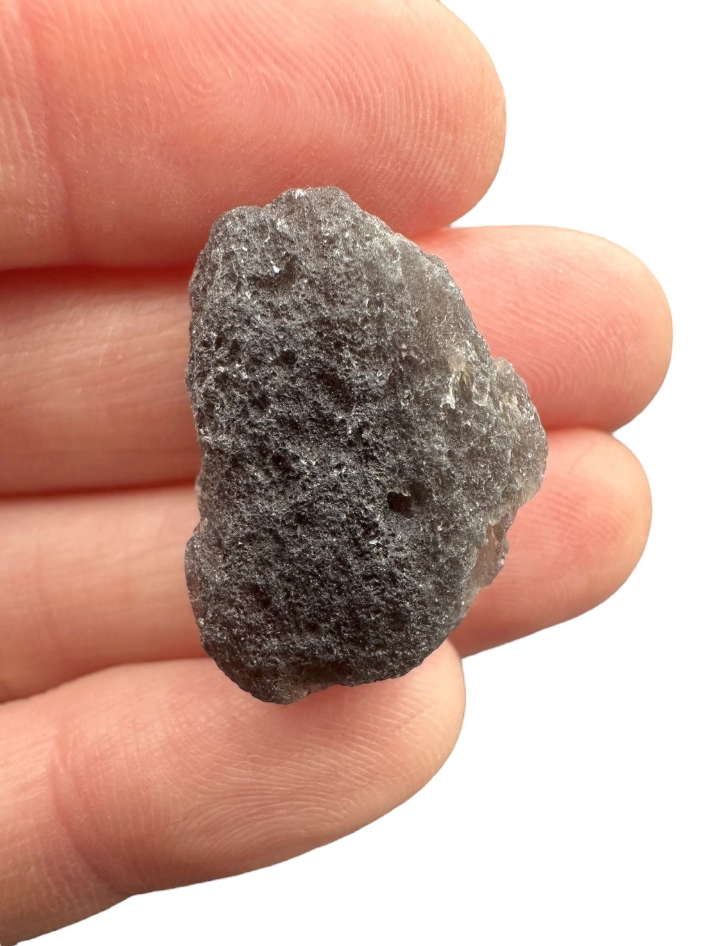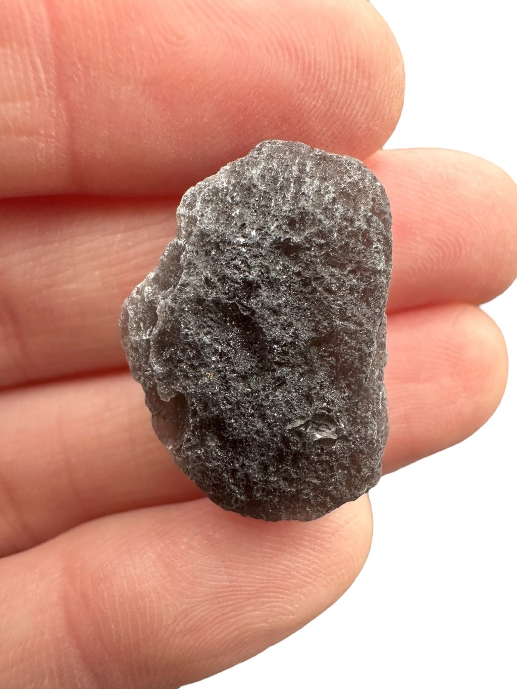 This stone has a dark, almost opaque color that ranges from gray to black. The surface can be glassy and textured, sometimes with tiny bubbles, which is typical of tektites.