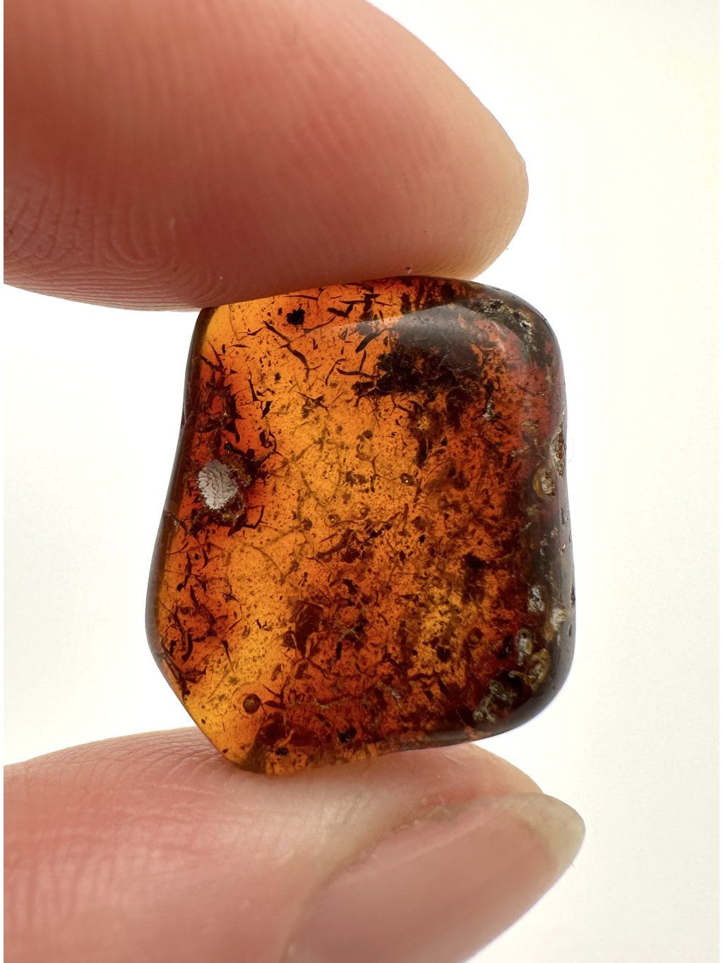 Polish amber is also renowned for its exceptionally well-preserved inclusions. The most common inclusions are small fossils of prehistoric insects – such as flies, mosquitoes, wasps, beetles, termites, or ants. These specimens often preserve fine details of the body and wings. Rare but fascinating are plant inclusions, including conifer needles, pollen grains, leaf fragments, moss, or lichen. These remains come from the prehistoric forests that once covered what is now Northern Europe. Also rarer but striking are inclusions of spiders, centipedes, mites, or larvae.