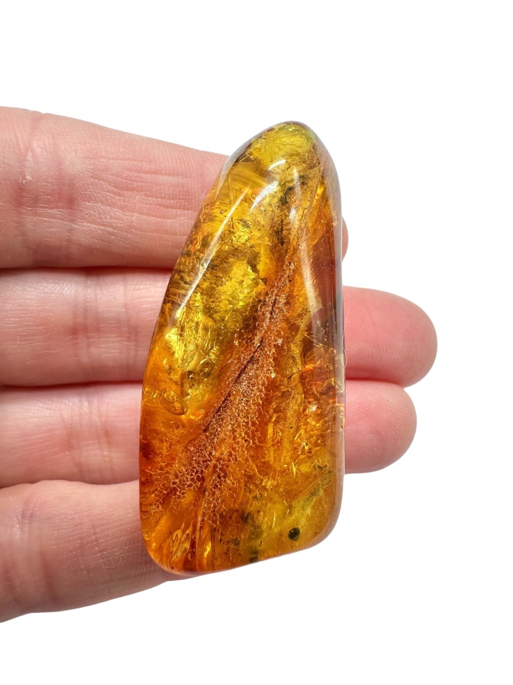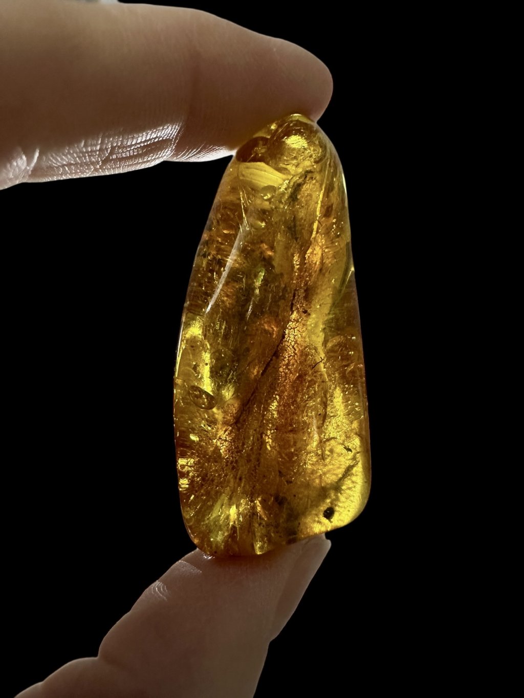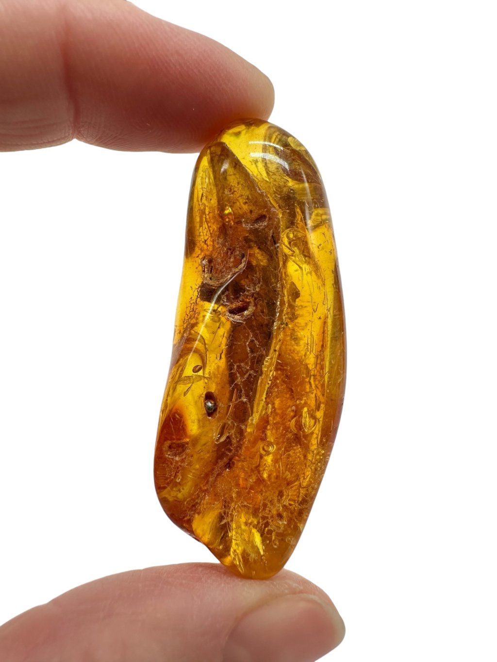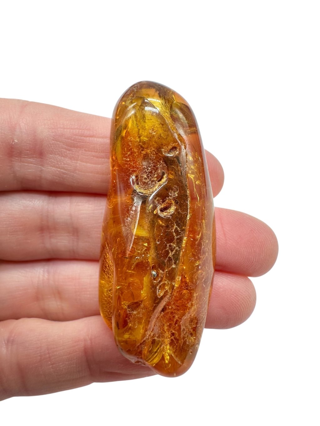Lithuanian amber is known for its distinct color range, varying from light yellow to deep honey and orange hues. There are also darker brown to almost black specimens and rarer whitish or greenish variants. Due to its high content of succinic acid (up to 8%), Baltic amber is considered one of the finest and highest-quality types in the world. It often contains natural inclusions such as air bubbles, plant fragments, or even tiny insects, which greatly enhance its collector and aesthetic value.