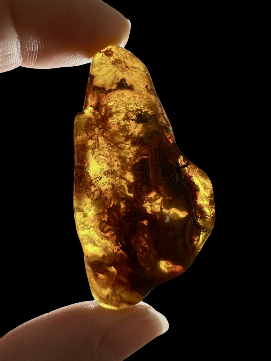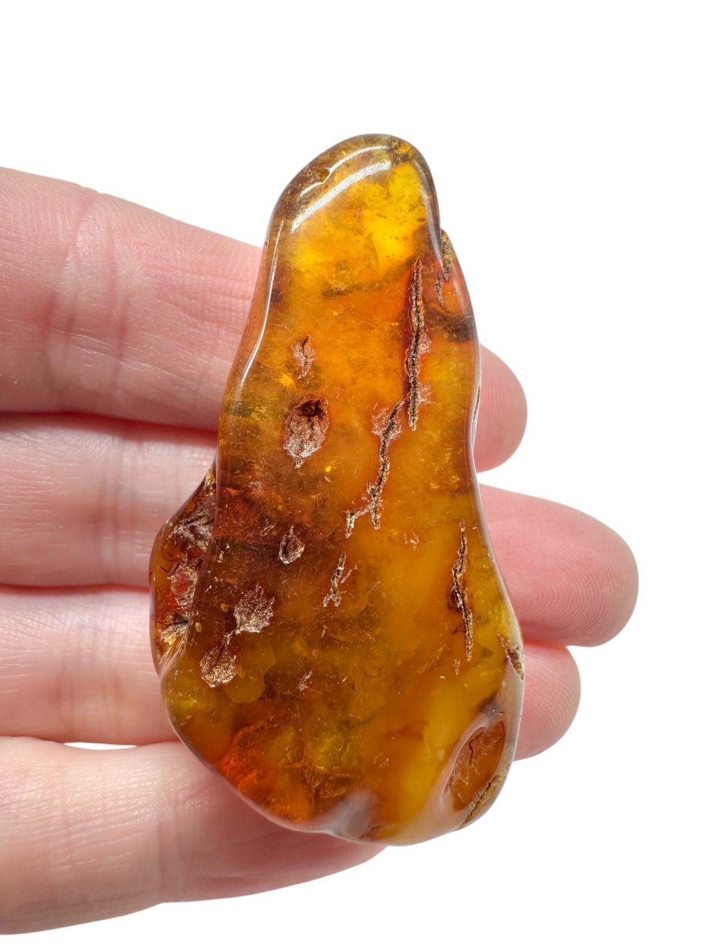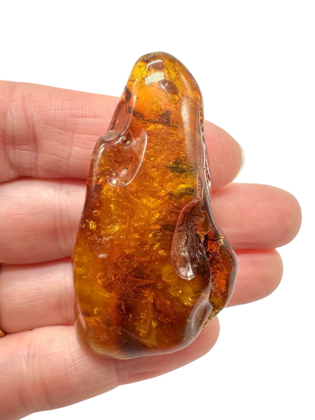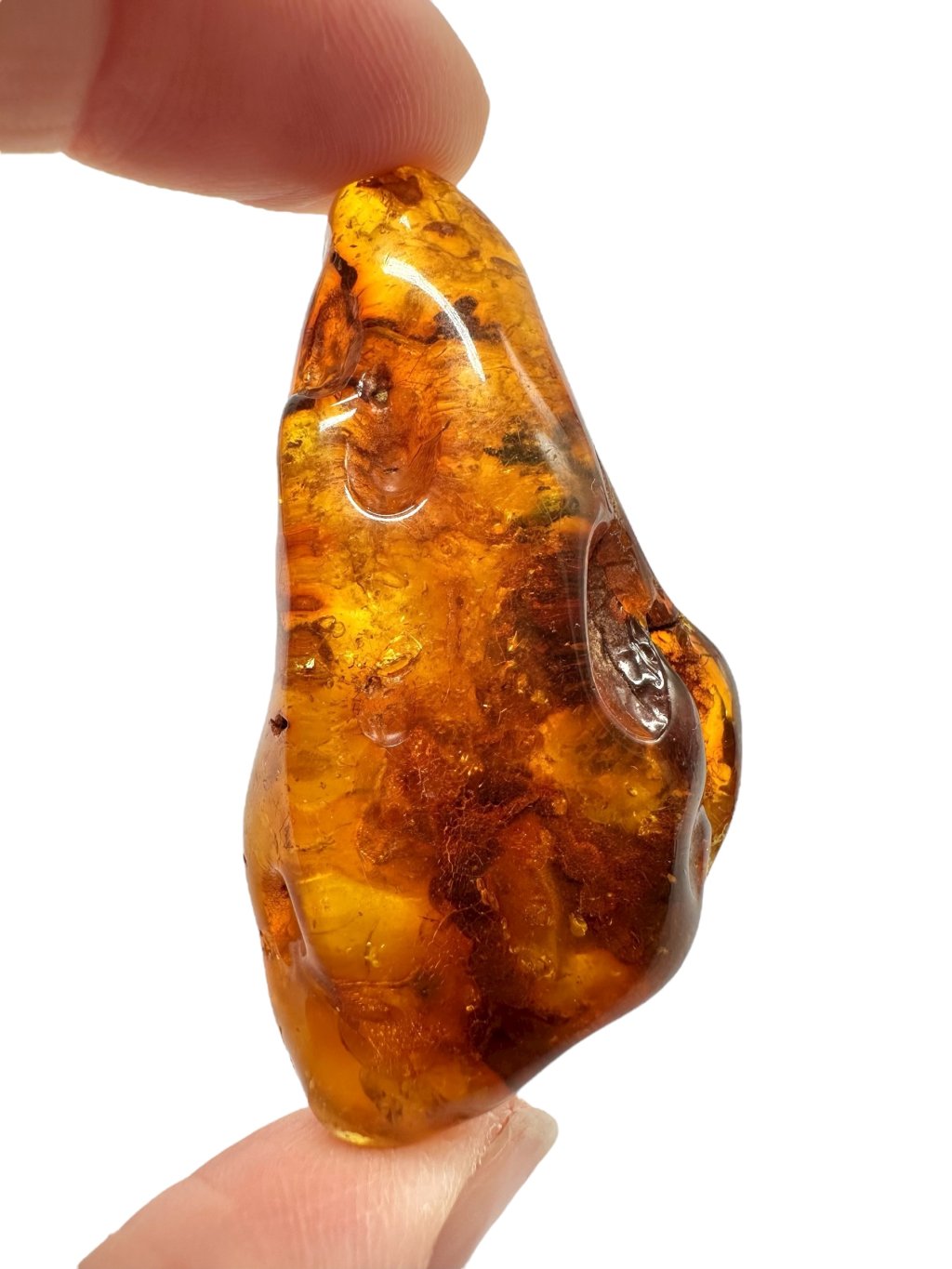 Lithuanian amber is known for its distinct color range, varying from light yellow to deep honey and orange hues. There are also darker brown to almost black specimens and rarer whitish or greenish variants. Due to its high content of succinic acid (up to 8%), Baltic amber is considered one of the finest and highest-quality types in the world. It often contains natural inclusions such as air bubbles, plant fragments, or even tiny insects, which greatly enhance its collector and aesthetic value.