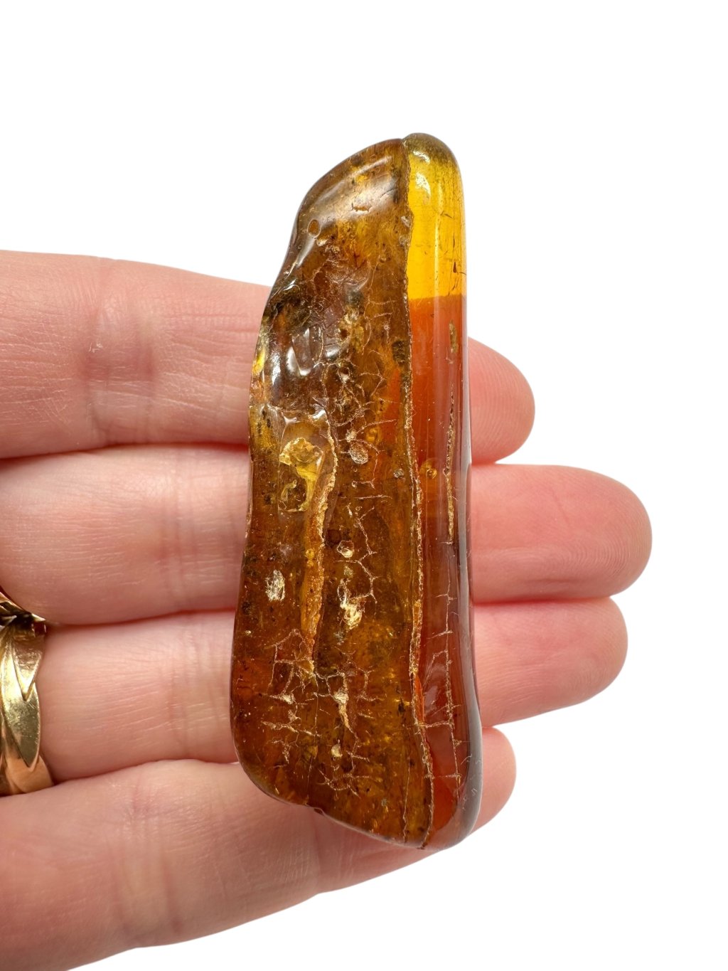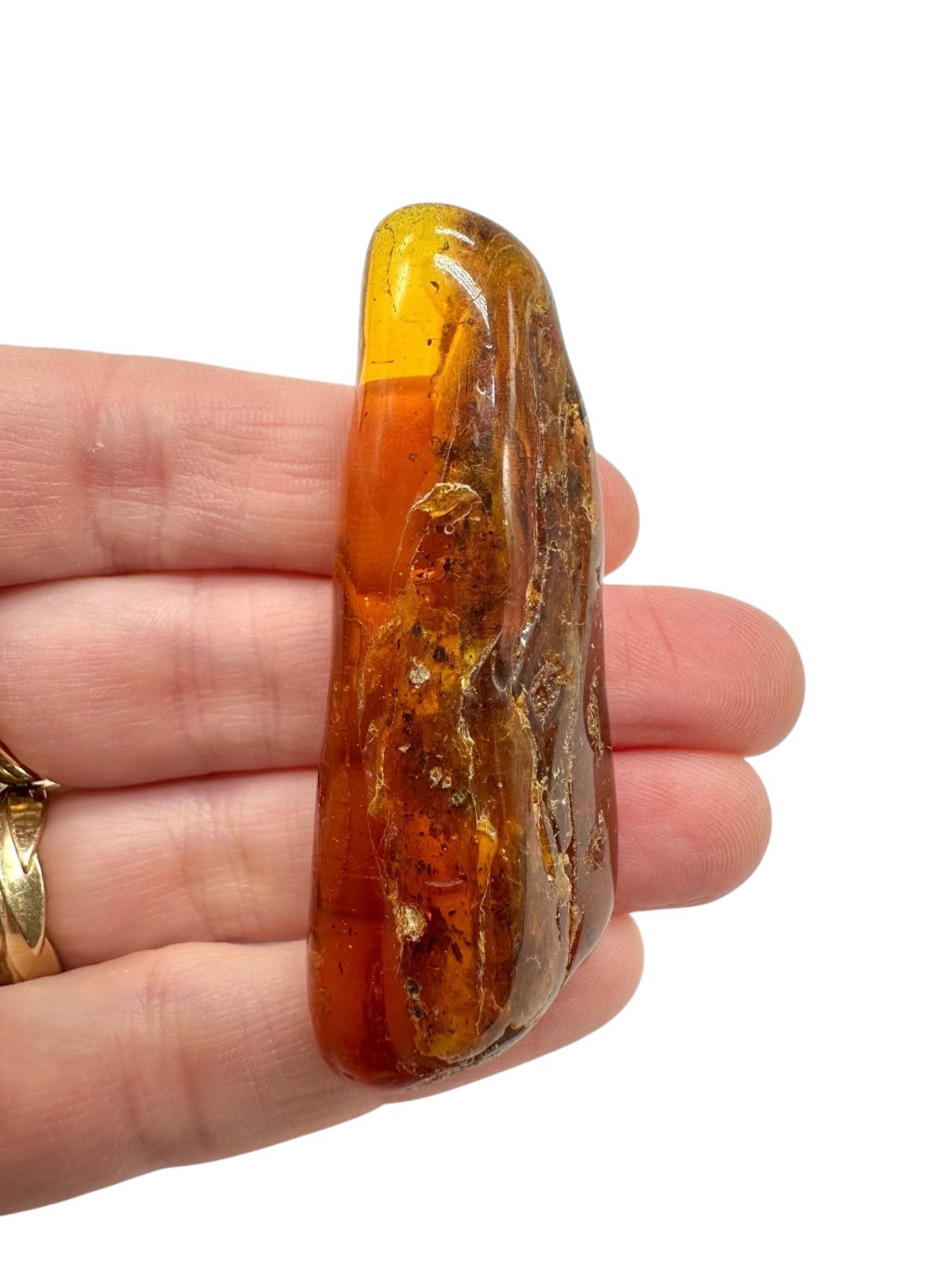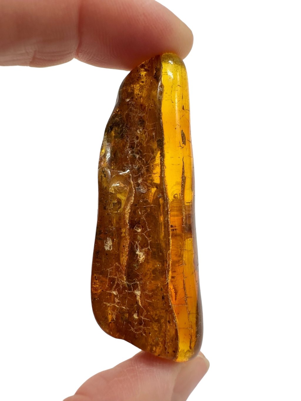 Lithuanian amber is known for its distinct color range, varying from light yellow to deep honey and orange hues. There are also darker brown to almost black specimens and rarer whitish or greenish variants. Due to its high content of succinic acid (up to 8%), Baltic amber is considered one of the finest and highest-quality types in the world. It often contains natural inclusions such as air bubbles, plant fragments, or even tiny insects, which greatly enhance its collector and aesthetic value.