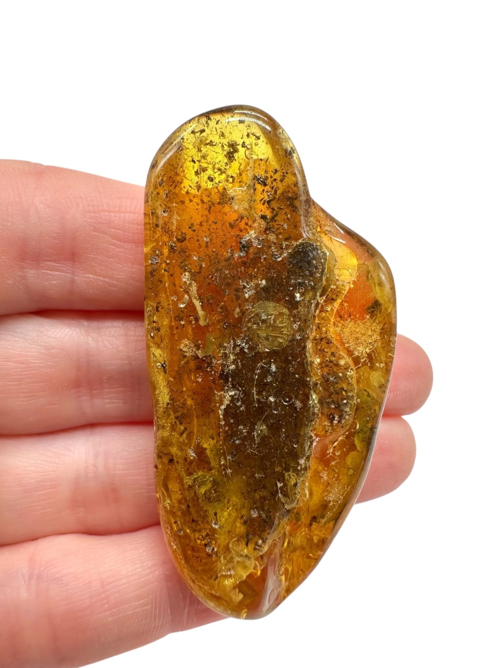 Lithuanian amber is known for its distinct color range, varying from light yellow to deep honey and orange hues. There are also darker brown to almost black specimens and rarer whitish or greenish variants. Due to its high content of succinic acid (up to 8%), Baltic amber is considered one of the finest and highest-quality types in the world. It often contains natural inclusions such as air bubbles, plant fragments, or even tiny insects, which greatly enhance its collector and aesthetic value.