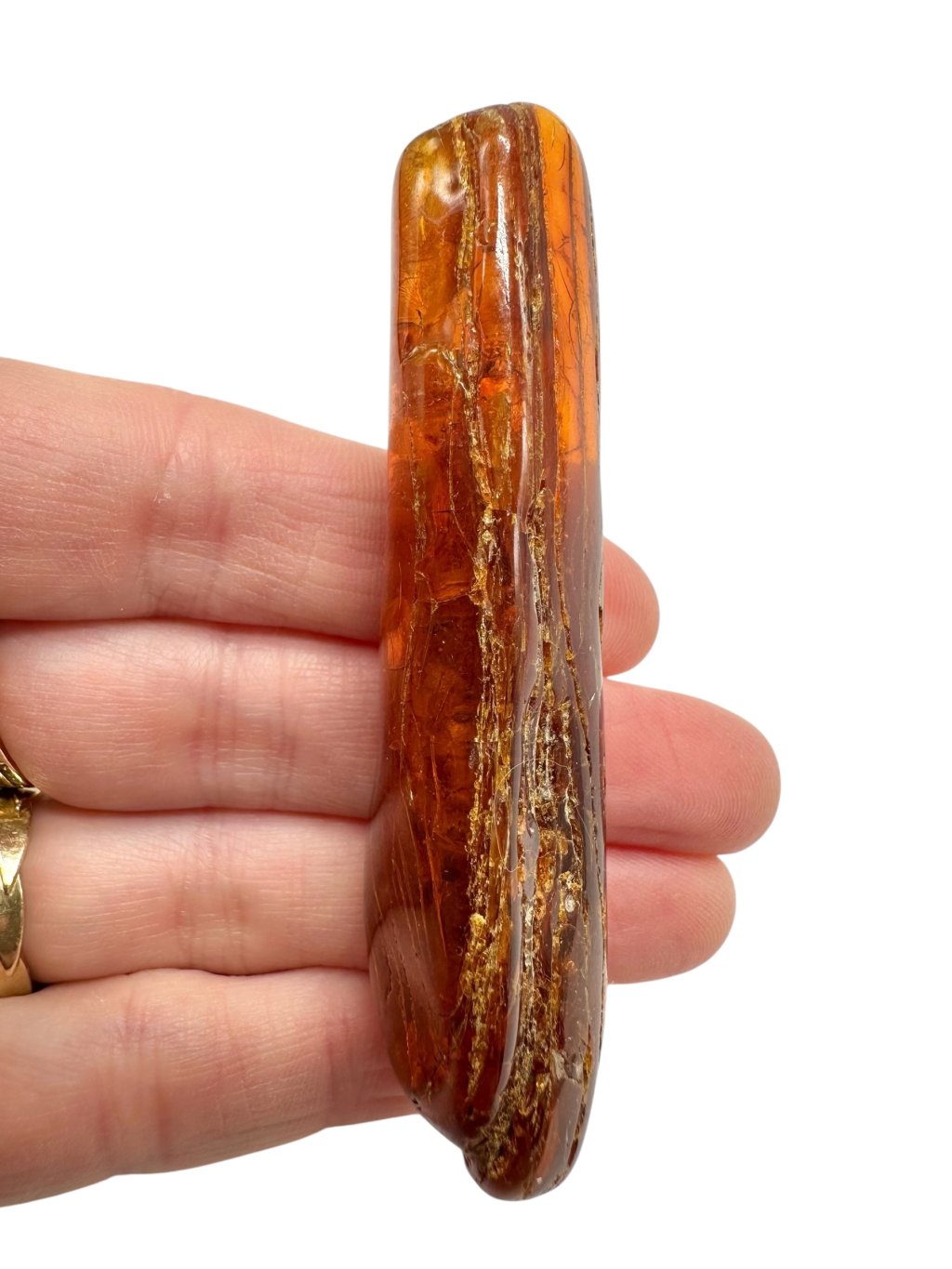 Lithuanian amber is known for its distinct color range, varying from light yellow to deep honey and orange hues. There are also darker brown to almost black specimens and rarer whitish or greenish variants. Due to its high content of succinic acid (up to 8%), Baltic amber is considered one of the finest and highest-quality types in the world. It often contains natural inclusions such as air bubbles, plant fragments, or even tiny insects, which greatly enhance its collector and aesthetic value.
