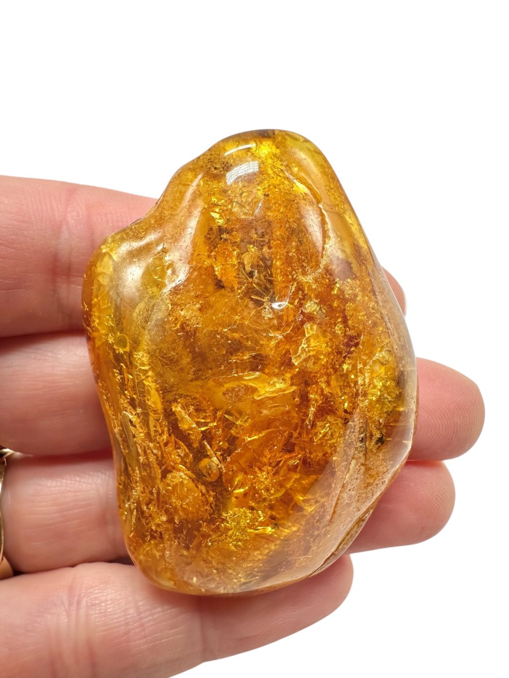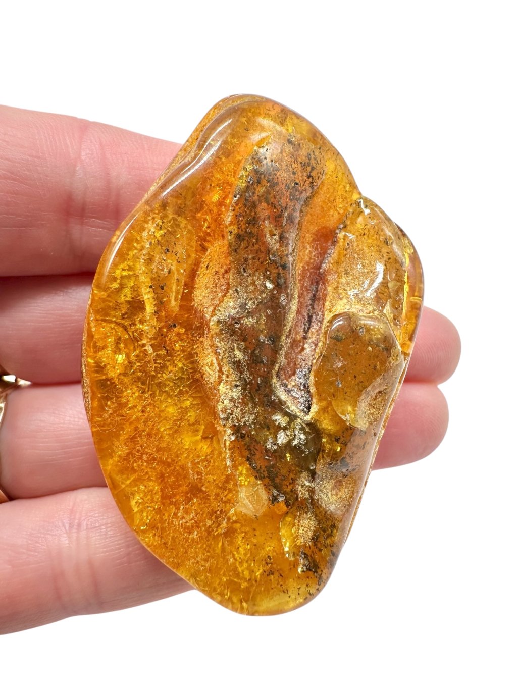 Lithuanian amber is known for its distinct color range, varying from light yellow to deep honey and orange hues. There are also darker brown to almost black specimens and rarer whitish or greenish variants. Due to its high content of succinic acid (up to 8%), Baltic amber is considered one of the finest and highest-quality types in the world. It often contains natural inclusions such as air bubbles, plant fragments, or even tiny insects, which greatly enhance its collector and aesthetic value.