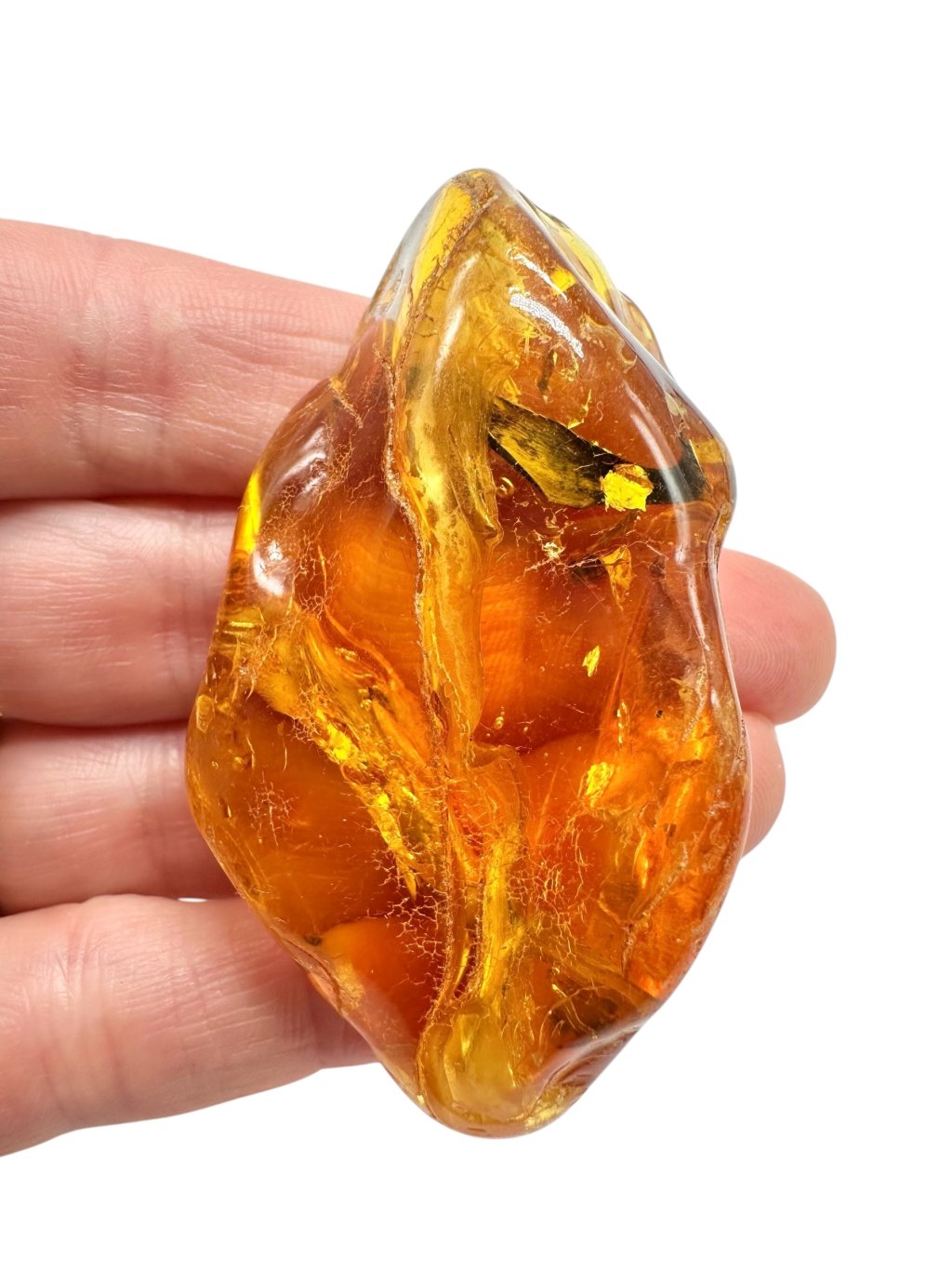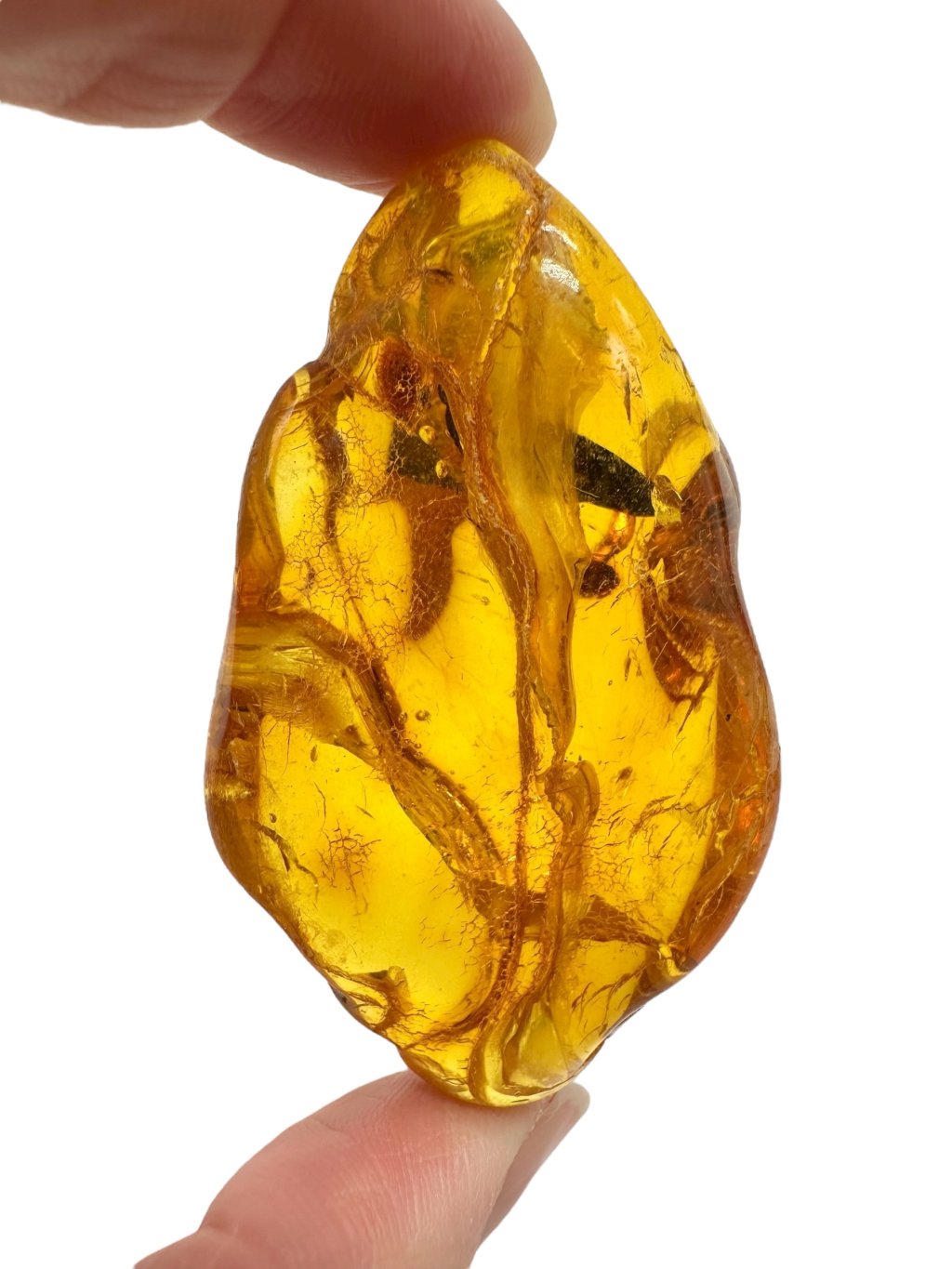 Lithuanian amber is known for its distinct color range, varying from light yellow to deep honey and orange hues. There are also darker brown to almost black specimens and rarer whitish or greenish variants. Due to its high content of succinic acid (up to 8%), Baltic amber is considered one of the finest and highest-quality types in the world. It often contains natural inclusions such as air bubbles, plant fragments, or even tiny insects, which greatly enhance its collector and aesthetic value.