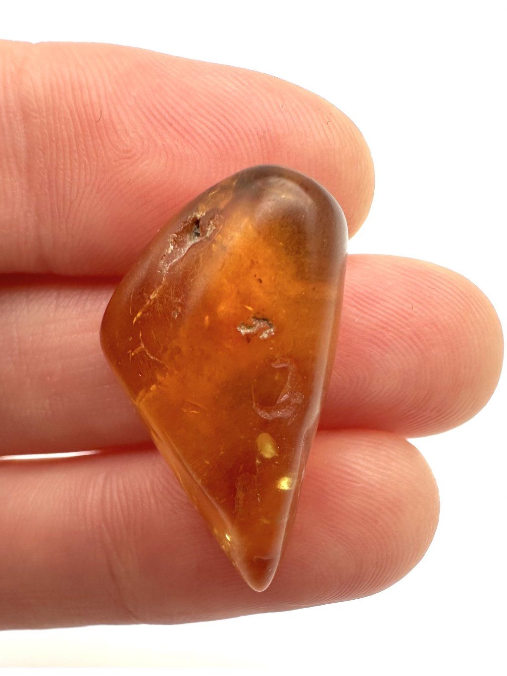 Baltic amber typically features a golden to honey-brown color, but it can also appear in shades of yellow, orange, red, milky white, bluish, or even green. It has a low hardness (2–2.5 on the Mohs scale), making it easy to shape and polish. This makes it extremely popular in jewelry-making. It is also unique due to its relatively high content of succinic acid, which can reach up to 8%. This organic compound contributes to amber’s characteristic chemical properties.