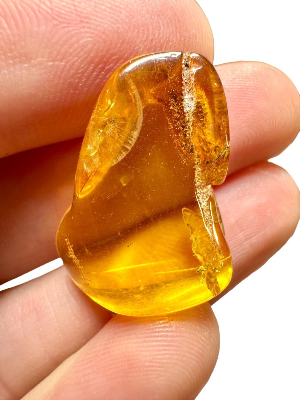 Polish amber is also renowned for its exceptionally well-preserved inclusions. The most common inclusions are small fossils of prehistoric insects – such as flies, mosquitoes, wasps, beetles, termites, or ants. These specimens often preserve fine details of the body and wings. Rare but fascinating are plant inclusions, including conifer needles, pollen grains, leaf fragments, moss, or lichen. These remains come from the prehistoric forests that once covered what is now Northern Europe. Also rarer but striking are inclusions of spiders, centipedes, mites, or larvae.