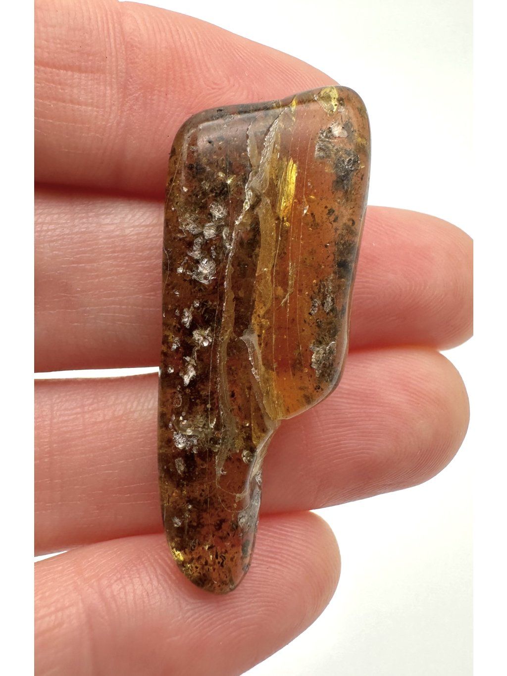 Polish amber is also renowned for its exceptionally well-preserved inclusions. The most common inclusions are small fossils of prehistoric insects – such as flies, mosquitoes, wasps, beetles, termites, or ants. These specimens often preserve fine details of the body and wings. Rare but fascinating are plant inclusions, including conifer needles, pollen grains, leaf fragments, moss, or lichen. These remains come from the prehistoric forests that once covered what is now Northern Europe. Also rarer but striking are inclusions of spiders, centipedes, mites, or larvae.