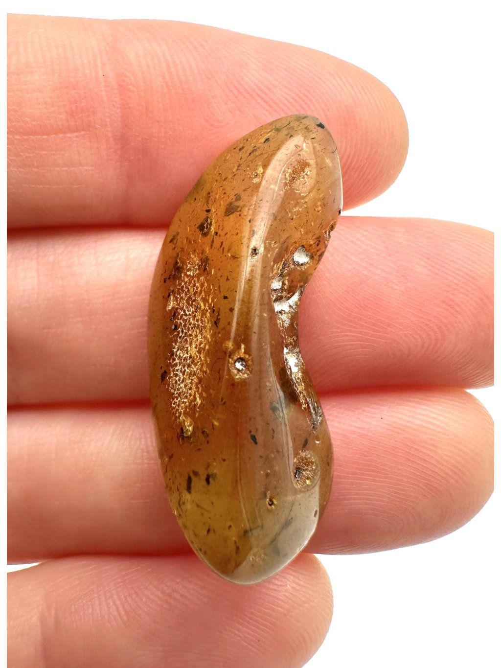 Polish amber is also renowned for its exceptionally well-preserved inclusions. The most common inclusions are small fossils of prehistoric insects – such as flies, mosquitoes, wasps, beetles, termites, or ants. These specimens often preserve fine details of the body and wings. Rare but fascinating are plant inclusions, including conifer needles, pollen grains, leaf fragments, moss, or lichen. These remains come from the prehistoric forests that once covered what is now Northern Europe. Also rarer but striking are inclusions of spiders, centipedes, mites, or larvae.