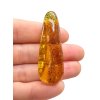 Lithuanian amber is known for its distinctive appearance, often ranging from light to dark yellow, with shades transitioning into warm honey or orange tones. There are also darker varieties—from brown to nearly black—and rarer ones that appear almost white or greenish. Due to its high content of succinic acid (up to around 8%), Baltic amber is considered higher quality compared to other types. It often contains natural inclusions such as air bubbles, plant fragments, or small insects, which significantly enhance its collector and aesthetic value.