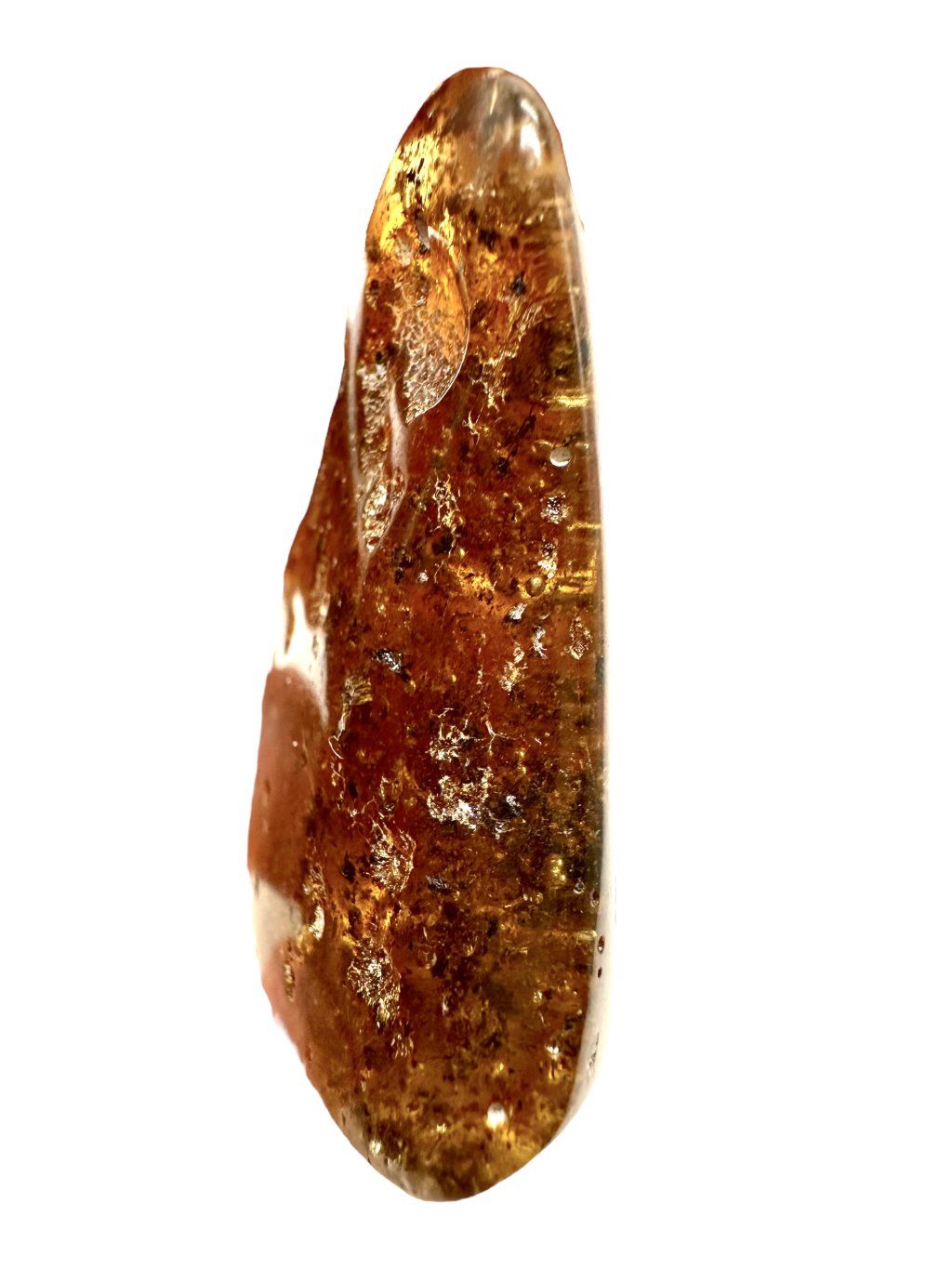 Polish amber is also renowned for its exceptionally well-preserved inclusions. The most common inclusions are small fossils of prehistoric insects – such as flies, mosquitoes, wasps, beetles, termites, or ants. These specimens often preserve fine details of the body and wings. Rare but fascinating are plant inclusions, including conifer needles, pollen grains, leaf fragments, moss, or lichen. These remains come from the prehistoric forests that once covered what is now Northern Europe. Also rarer but striking are inclusions of spiders, centipedes, mites, or larvae.