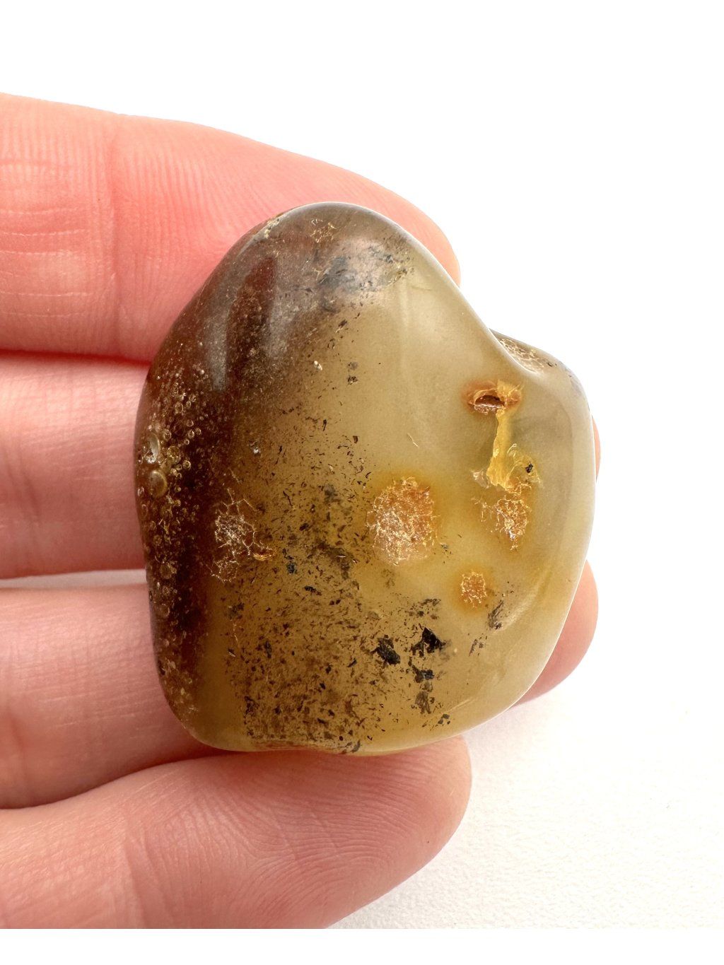 Polish amber is also renowned for its exceptionally well-preserved inclusions. The most common inclusions are small fossils of prehistoric insects – such as flies, mosquitoes, wasps, beetles, termites, or ants. These specimens often preserve fine details of the body and wings. Rare but fascinating are plant inclusions, including conifer needles, pollen grains, leaf fragments, moss, or lichen. These remains come from the prehistoric forests that once covered what is now Northern Europe. Also rarer but striking are inclusions of spiders, centipedes, mites, or larvae.