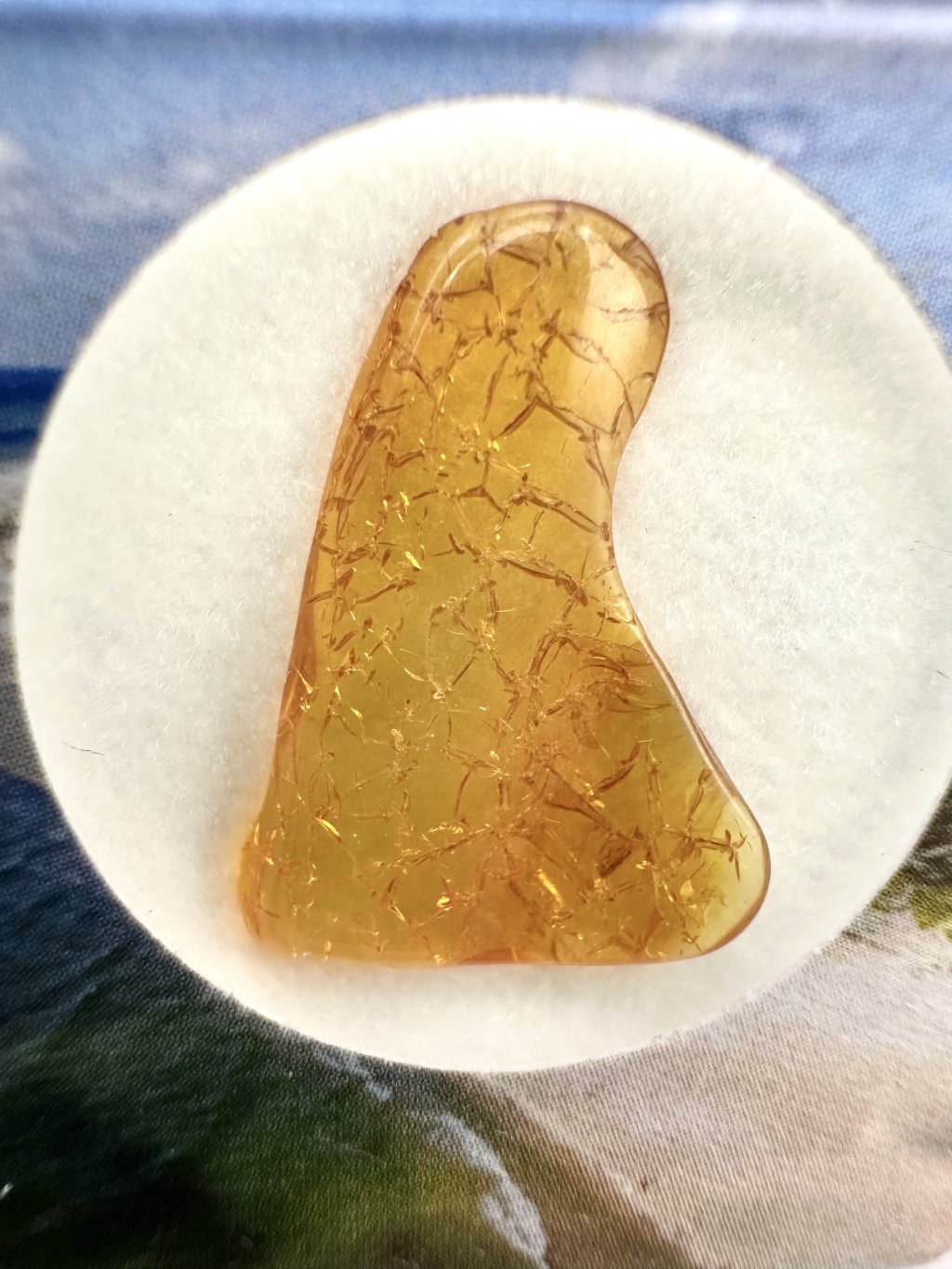 Lithuanian amber is known for its distinctive appearance, often ranging from light to dark yellow, with shades transitioning into warm honey or orange tones. There are also darker varieties—from brown to nearly black—and rarer ones that appear almost white or greenish. Due to its high content of succinic acid (up to around 8%), Baltic amber is considered higher quality compared to other types. It often contains natural inclusions such as air bubbles, plant fragments, or small insects, which significantly enhance its collector and aesthetic value.