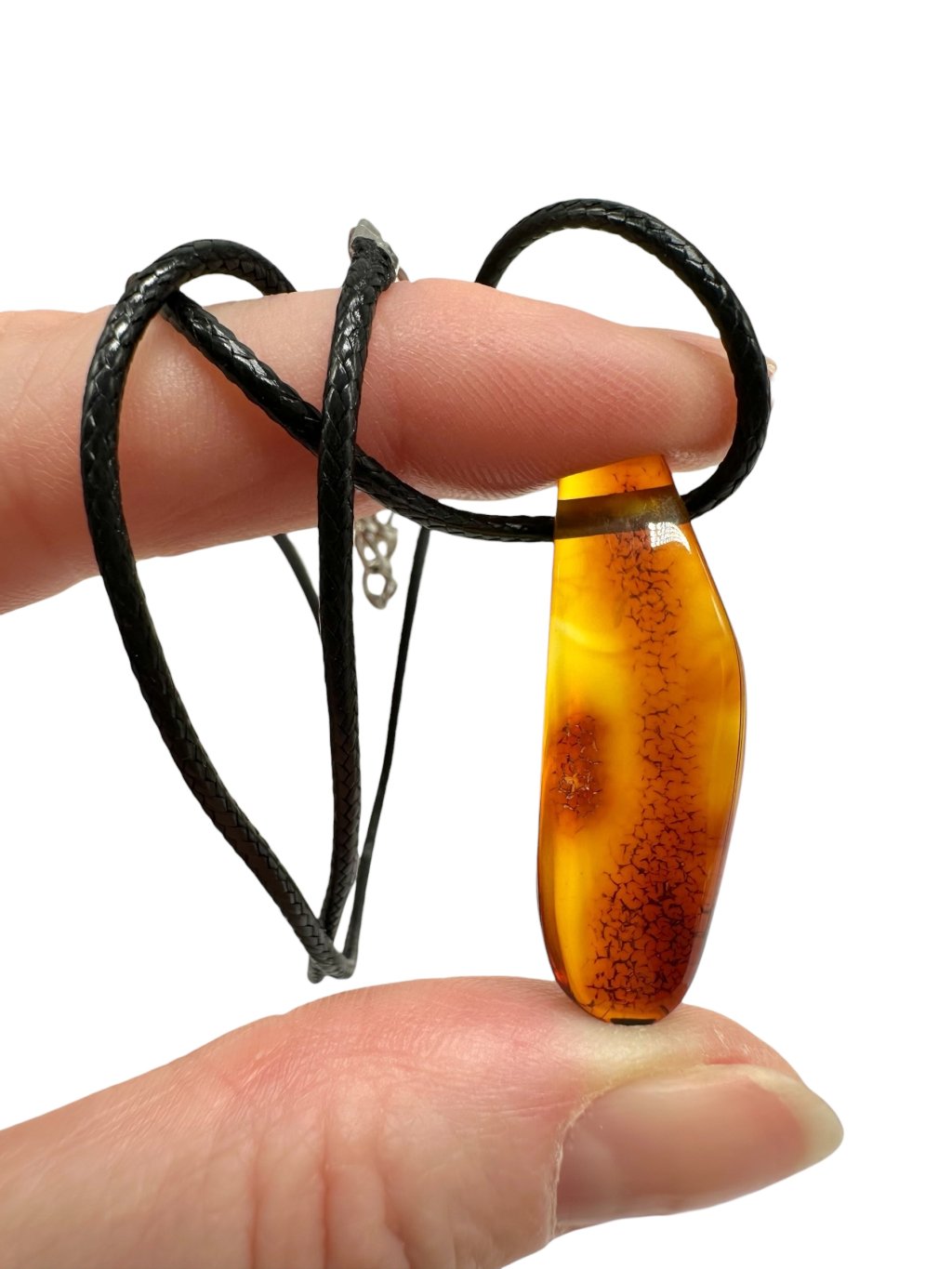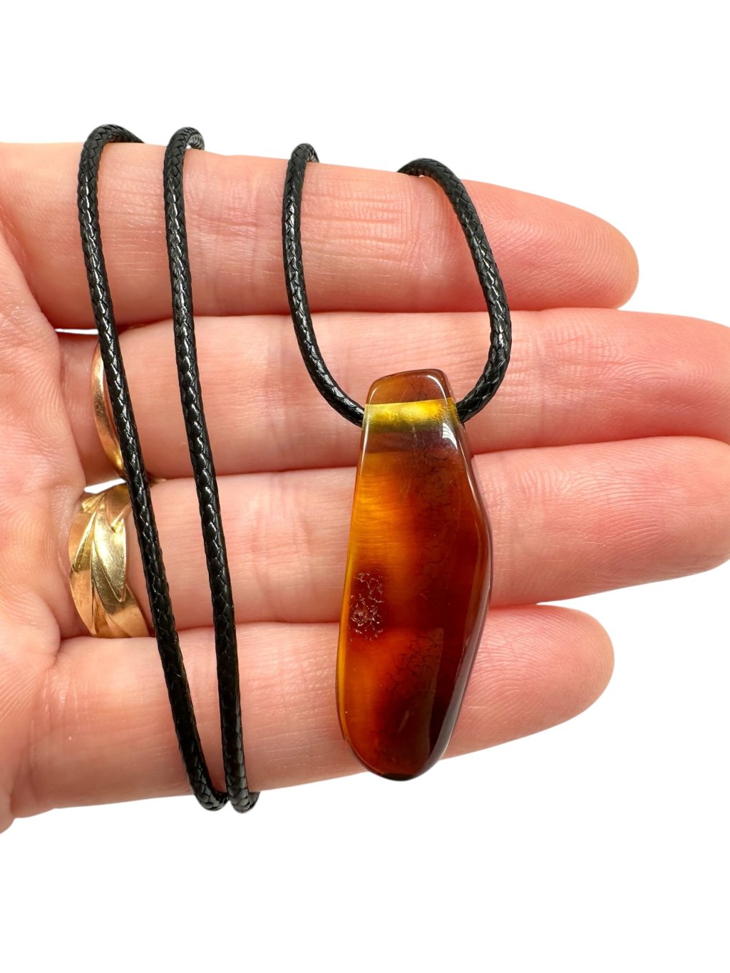 Amber pendant with leather cord