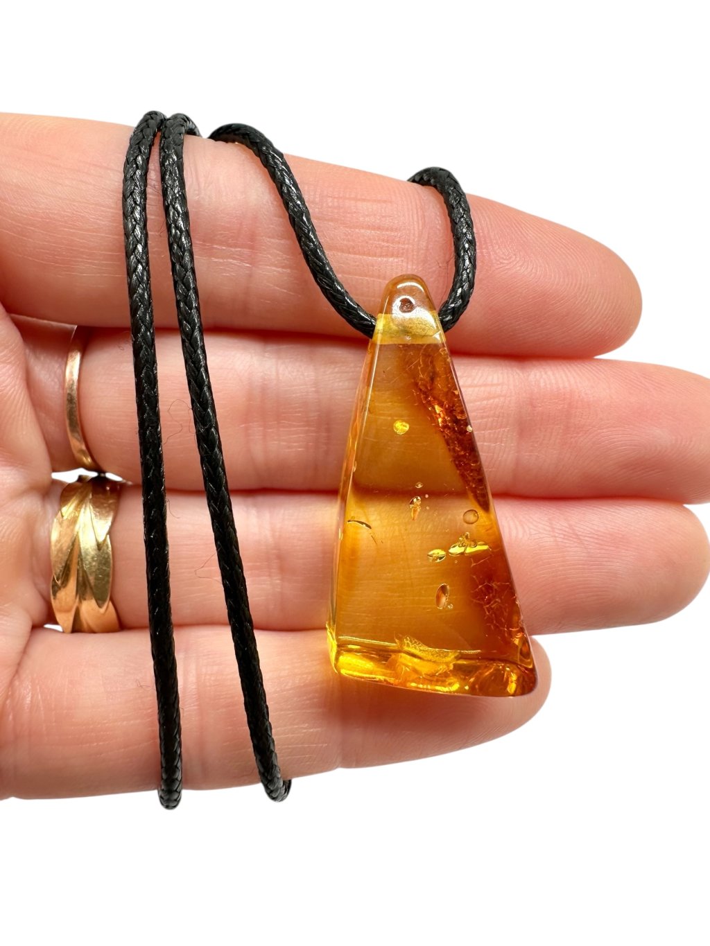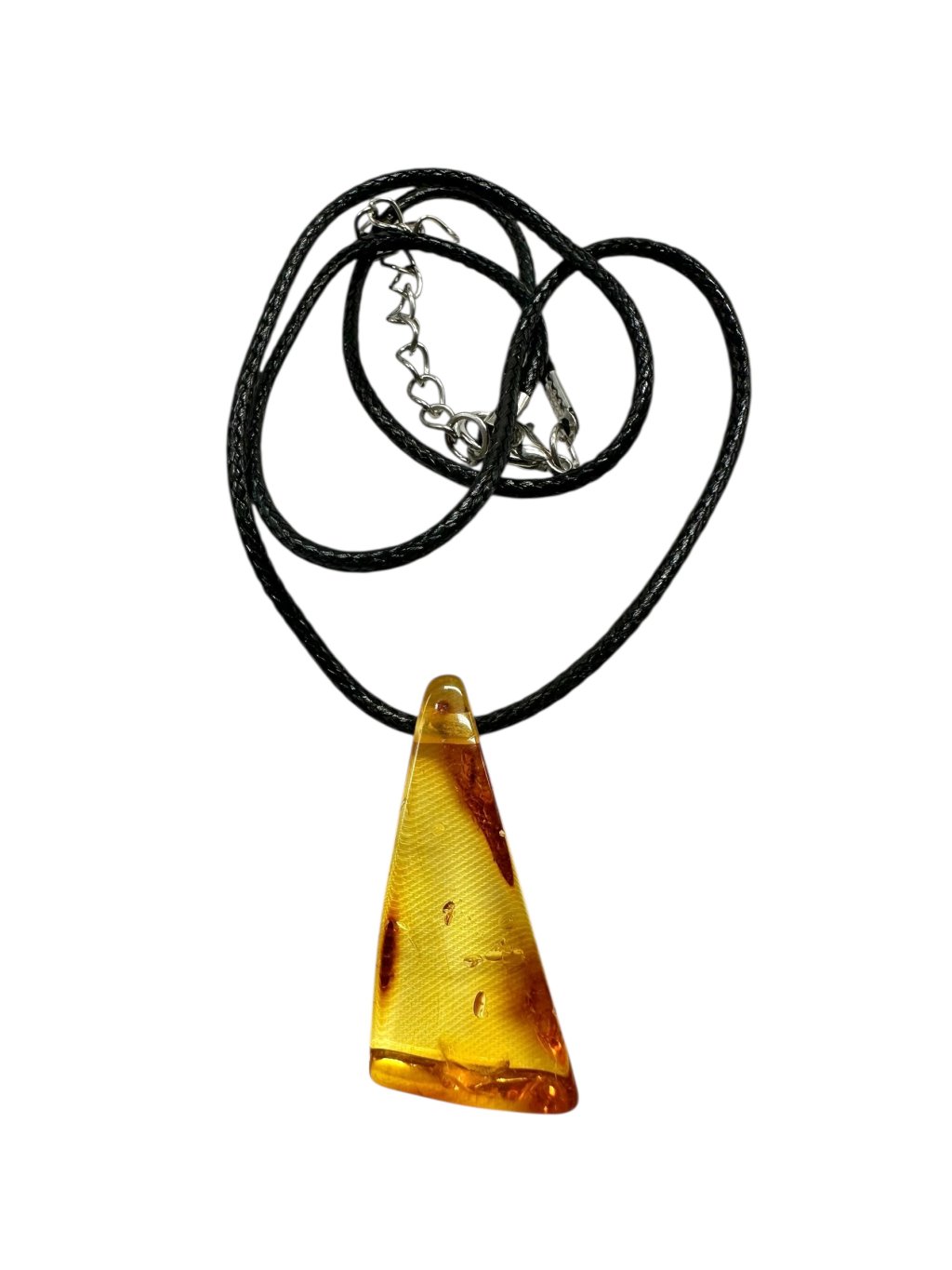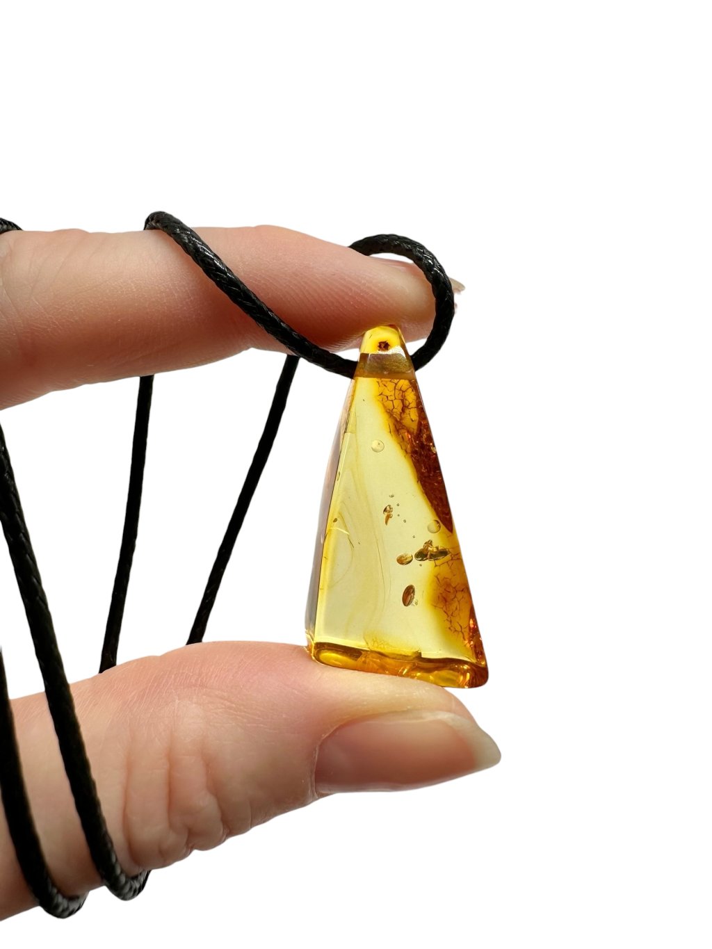 Amber pendant with leather cord