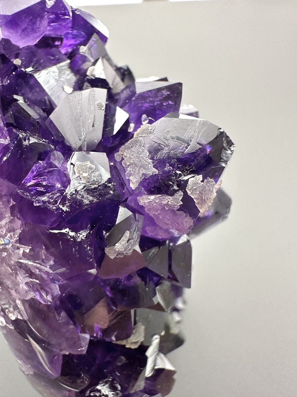 Grade A - Distinguished by its deep, rich purple color and strong luster crystals that are nearly flawless. These are often pieces with distinctive, evenly spaced crystals that represent a collectible standard.
