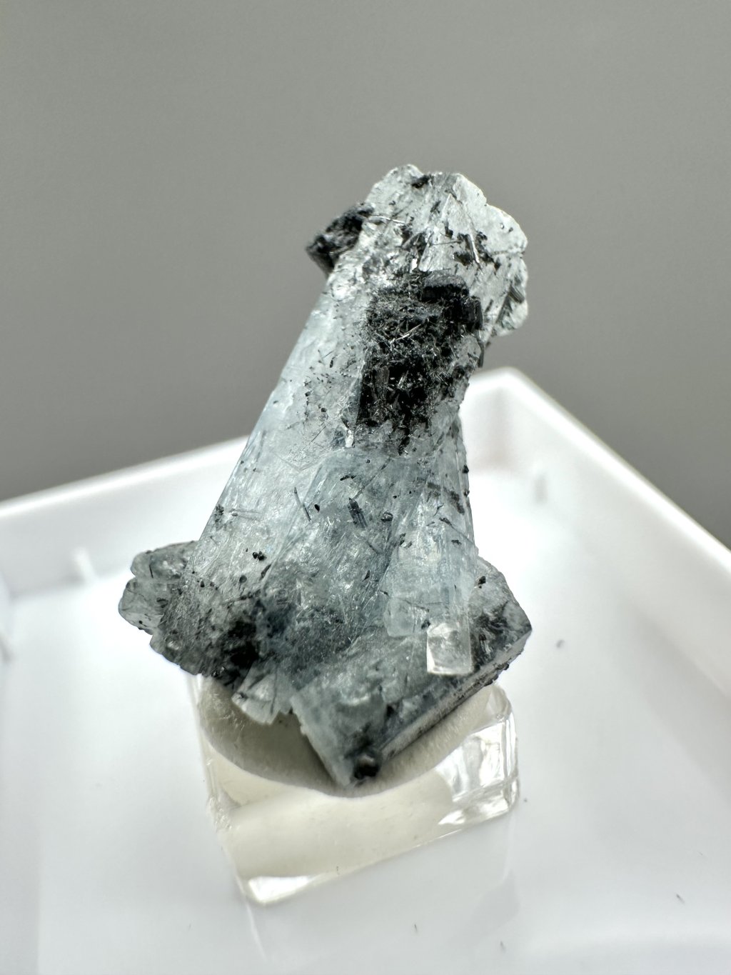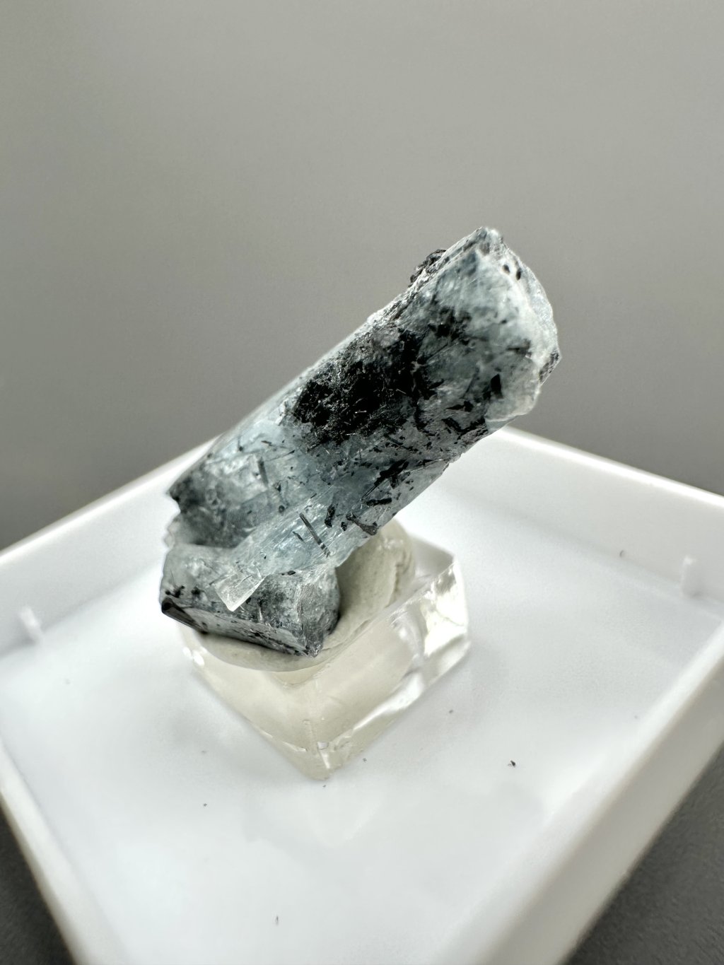 - Black tourmaline (scoria): In the Erongo area, aquamarines are often found together with black tourmaline. Crystals of tourmaline and aquamarine can develop side by side in the pegmatites, creating an attractive contrast between the clear blue of the aquamarine and the darker shades of tourmaline.