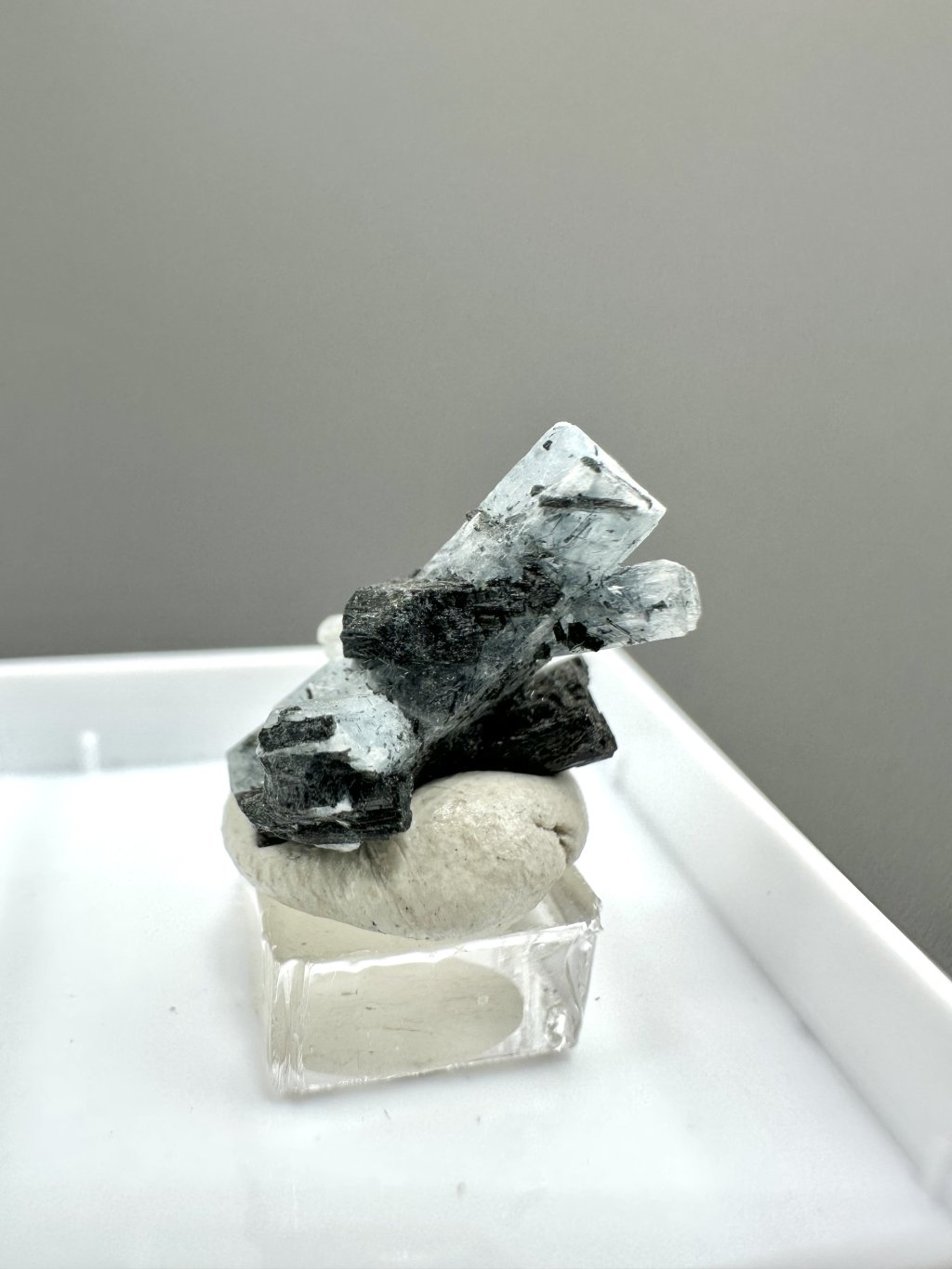 - Muscovite: Muscovite crystals, which have a silvery appearance, are another mineral that forms compositions with aquamarine. Muscovite petals create a beautiful contrast with the blue colour of the crystals.
