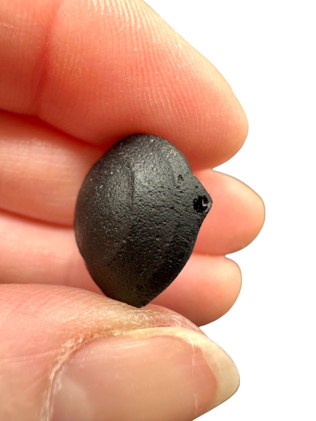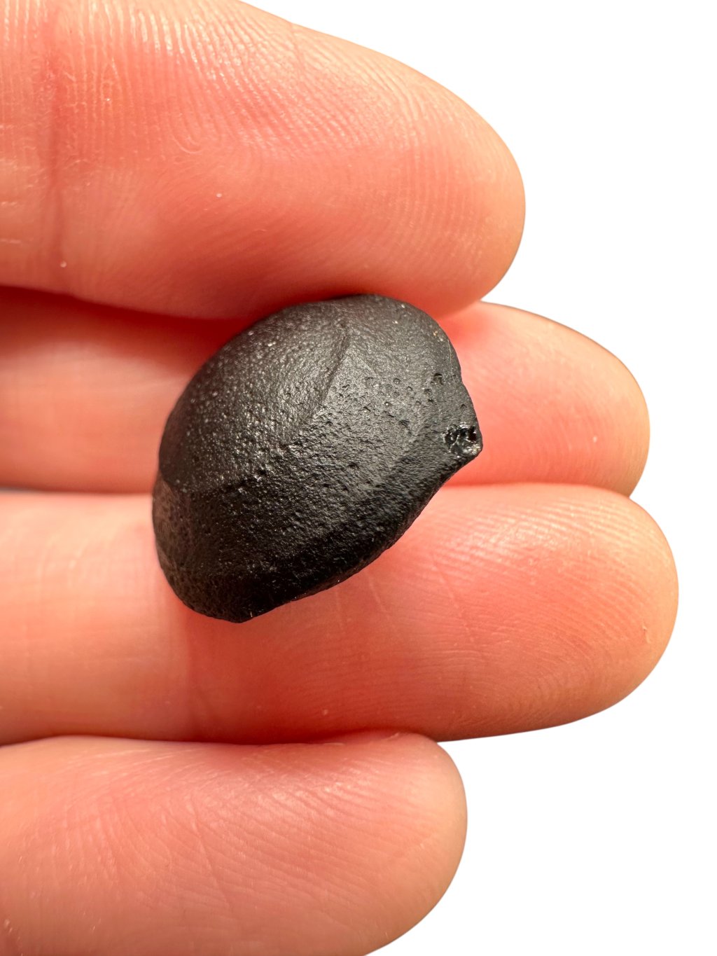 Australites formed approximately 790,000 years ago during a massive meteorite impact in what is now Southeast Asia. Molten material was ejected thousands of kilometers to Australia, where it briefly left Earth’s atmosphere. Upon re-entry, it underwent a rare secondary melting, cooled mid-air, and fell to the ground – forming aerodynamically shaped pieces known as “australite buttons”.