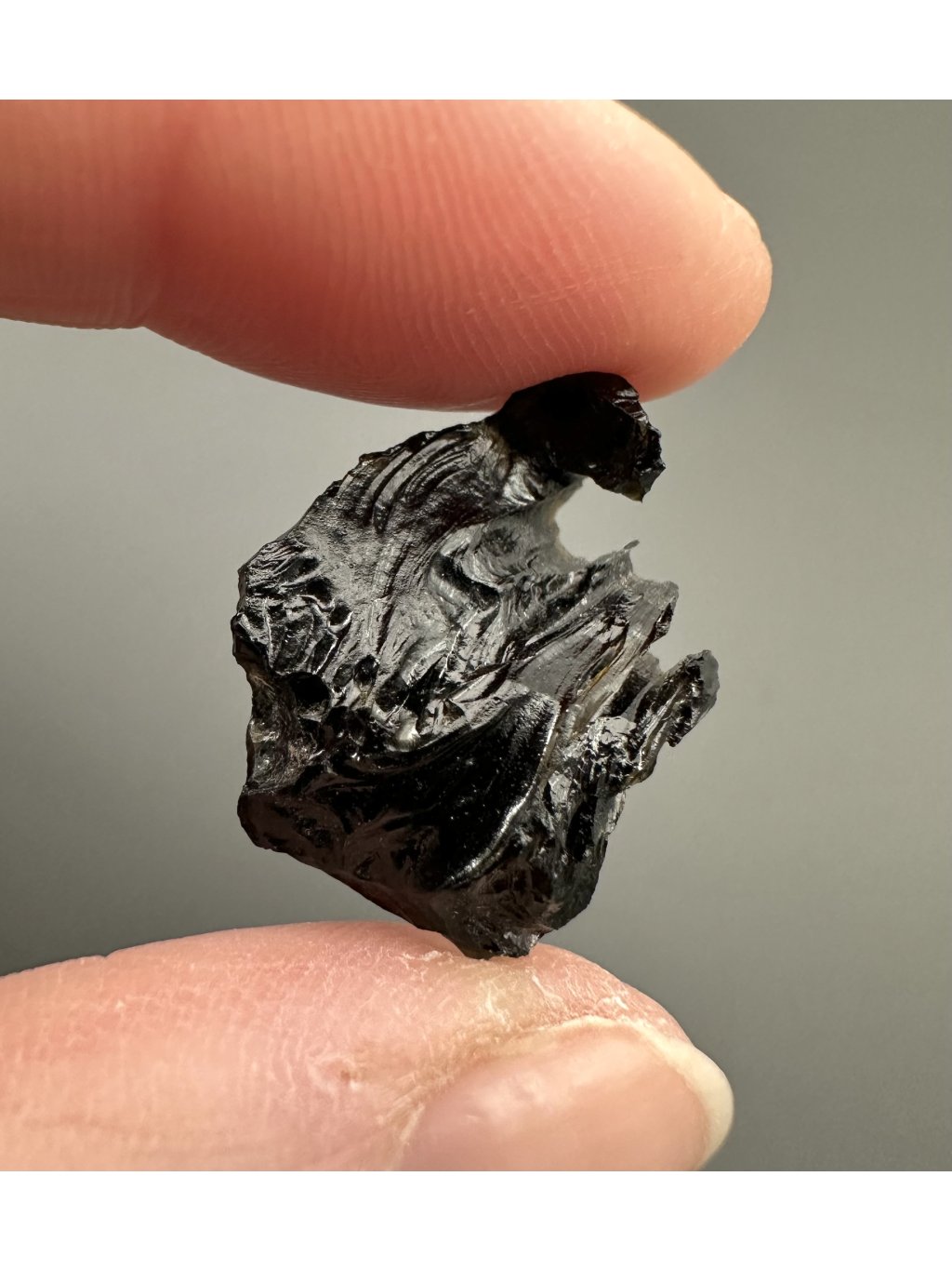 This tektite was formed millions of years ago by the collision of a meteorite with a layer of earth containing sand particles and trace metals on the island of Belitung in Indonesia. When the meteorite fell, it reacted with the high tin content (tin mines) on this island and formed the black rock that was later called Batu Satam. Due to this process, this tektite can only be found in Indonesia and is sought after by collectors worldwide.