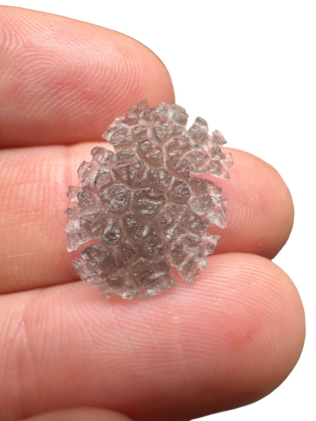 This recently discovered type of obsidian is among the most beautiful obsidians in the world. It is distinguished from other obsidians by its distinctive deep texture, which resembles South Bohemian moldavites (it is very similar to the Besednice Jezkovna). Its sculpture was formed by rapid cooling, surface cracking, and the subsequent slow action of soil acids at the specific site, just like in the case of moldavites. The exact location is currently kept secret to protect the area from diggers and potential landscape devastation. We believe that once the precise discovery site is revealed and scientifically examined, interest in this obsidian with its rare and aesthetic appearance will grow rapidly worldwide – especially due to its significant potential for use in the jewelry industry.