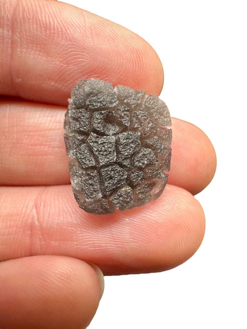 This recently discovered type of obsidian is among the most beautiful obsidians in the world. It is distinguished from other obsidians by its distinctive deep texture, which resembles South Bohemian moldavites (it is very similar to the Besednice Jezkovna). Its sculpture was formed by rapid cooling, surface cracking, and the subsequent slow action of soil acids at the specific site, just like in the case of moldavites. The exact location is currently kept secret to protect the area from diggers and potential landscape devastation. We believe that once the precise discovery site is revealed and scientifically examined, interest in this obsidian with its rare and aesthetic appearance will grow rapidly worldwide – especially due to its significant potential for use in the jewelry industry.