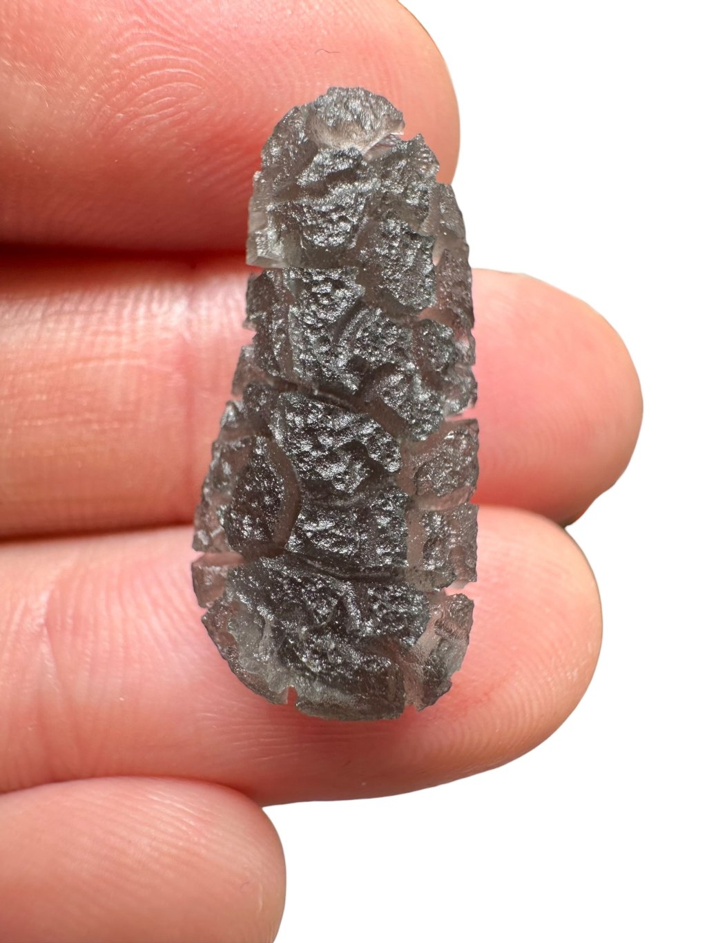 This recently discovered type of obsidian is among the most beautiful obsidians in the world. It is distinguished from other obsidians by its distinctive deep texture, which resembles South Bohemian moldavites (it is very similar to the Besednice Jezkovna). Its sculpture was formed by rapid cooling, surface cracking, and the subsequent slow action of soil acids at the specific site, just like in the case of moldavites. The exact location is currently kept secret to protect the area from diggers and potential landscape devastation. We believe that once the precise discovery site is revealed and scientifically examined, interest in this obsidian with its rare and aesthetic appearance will grow rapidly worldwide – especially due to its significant potential for use in the jewelry industry.