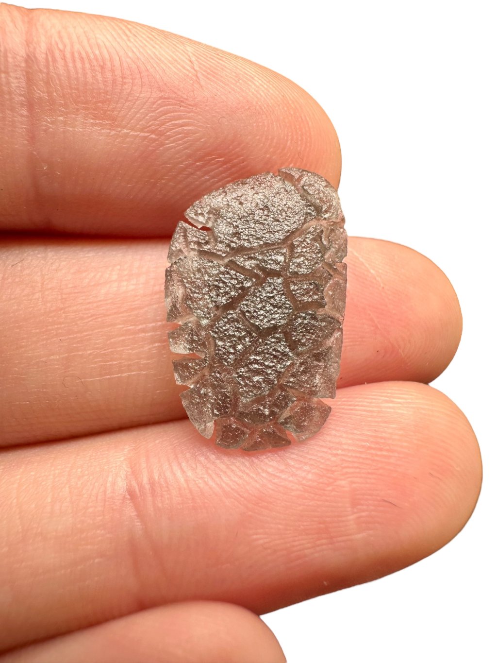 This recently discovered type of obsidian is among the most beautiful obsidians in the world. It is distinguished from other obsidians by its distinctive deep texture, which resembles South Bohemian moldavites (it is very similar to the Besednice Jezkovna). Its sculpture was formed by rapid cooling, surface cracking, and the subsequent slow action of soil acids at the specific site, just like in the case of moldavites. The exact location is currently kept secret to protect the area from diggers and potential landscape devastation. We believe that once the precise discovery site is revealed and scientifically examined, interest in this obsidian with its rare and aesthetic appearance will grow rapidly worldwide – especially due to its significant potential for use in the jewelry industry.