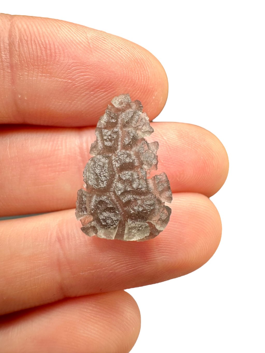 This recently discovered type of obsidian is among the most beautiful obsidians in the world. It is distinguished from other obsidians by its distinctive deep texture, which resembles South Bohemian moldavites (it is very similar to the Besednice Jezkovna). Its sculpture was formed by rapid cooling, surface cracking, and the subsequent slow action of soil acids at the specific site, just like in the case of moldavites. The exact location is currently kept secret to protect the area from diggers and potential landscape devastation. We believe that once the precise discovery site is revealed and scientifically examined, interest in this obsidian with its rare and aesthetic appearance will grow rapidly worldwide – especially due to its significant potential for use in the jewelry industry.