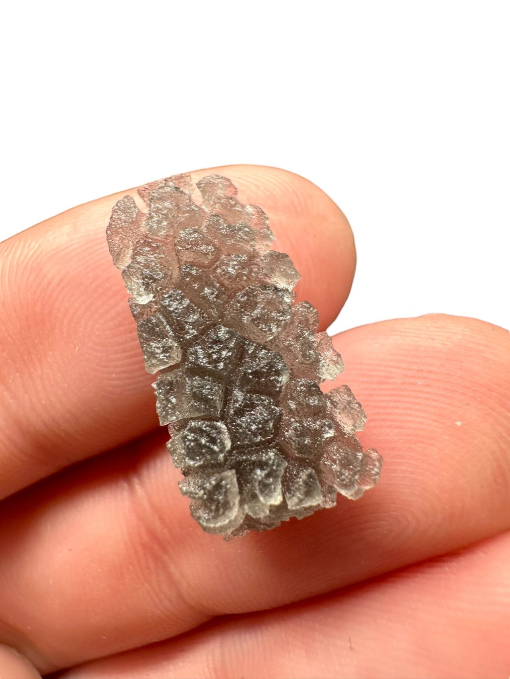 This recently discovered type of obsidian is among the most beautiful obsidians in the world. It is distinguished from other obsidians by its distinctive deep texture, which resembles South Bohemian moldavites (it is very similar to the Besednice Jezkovna). Its sculpture was formed by rapid cooling, surface cracking, and the subsequent slow action of soil acids at the specific site, just like in the case of moldavites. The exact location is currently kept secret to protect the area from diggers and potential landscape devastation. We believe that once the precise discovery site is revealed and scientifically examined, interest in this obsidian with its rare and aesthetic appearance will grow rapidly worldwide – especially due to its significant potential for use in the jewelry industry.
