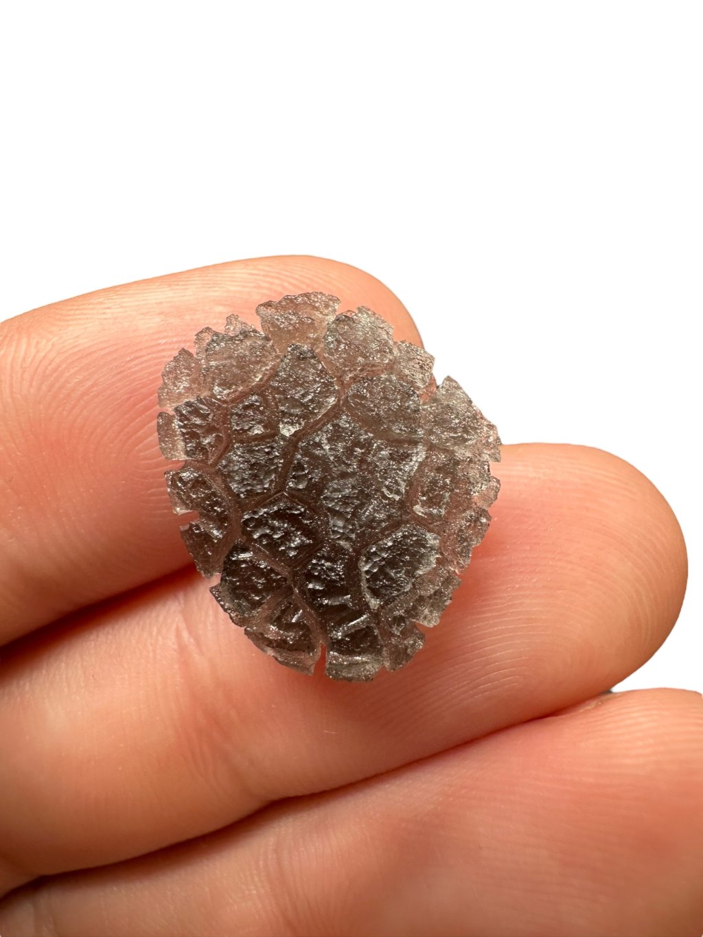 This recently discovered type of obsidian is among the most beautiful obsidians in the world. It is distinguished from other obsidians by its distinctive deep texture, which resembles South Bohemian moldavites (it is very similar to the Besednice Jezkovna). Its sculpture was formed by rapid cooling, surface cracking, and the subsequent slow action of soil acids at the specific site, just like in the case of moldavites. The exact location is currently kept secret to protect the area from diggers and potential landscape devastation. We believe that once the precise discovery site is revealed and scientifically examined, interest in this obsidian with its rare and aesthetic appearance will grow rapidly worldwide – especially due to its significant potential for use in the jewelry industry.