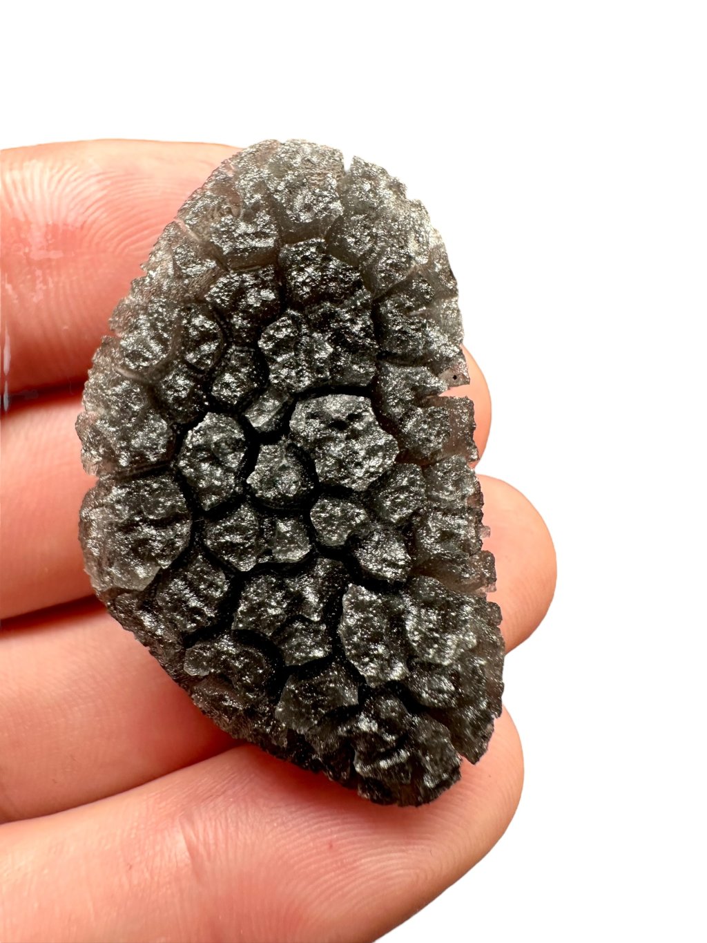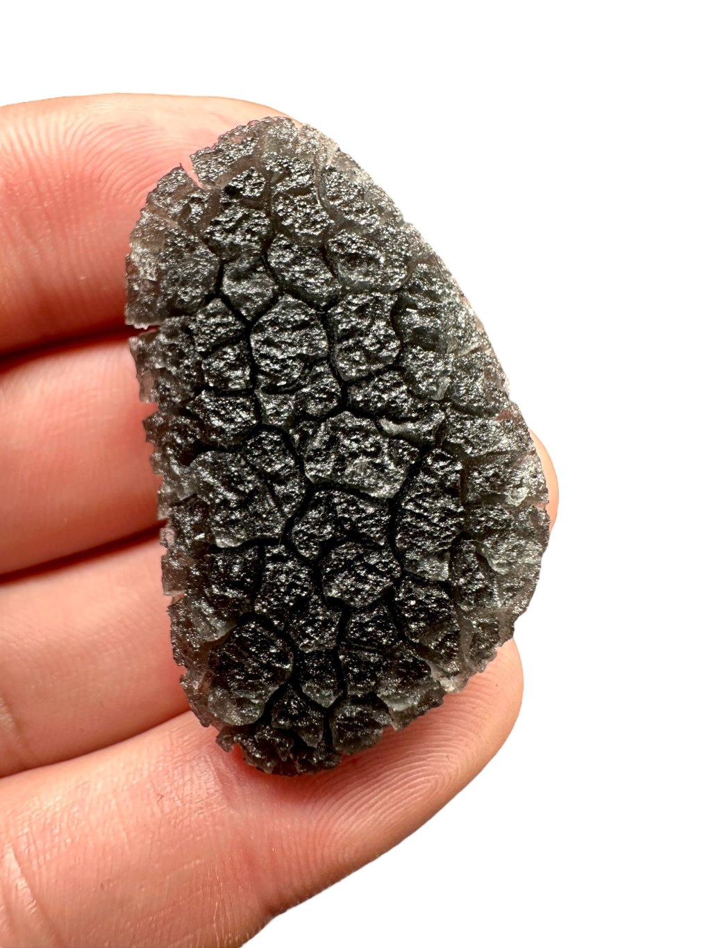 This recently discovered type of obsidian is among the most beautiful obsidians in the world. It is distinguished from other obsidians by its distinctive deep texture, which resembles South Bohemian moldavites (it is very similar to the Besednice Jezkovna). Its sculpture was formed by rapid cooling, surface cracking, and the subsequent slow action of soil acids at the specific site, just like in the case of moldavites. The exact location is currently kept secret to protect the area from diggers and potential landscape devastation. We believe that once the precise discovery site is revealed and scientifically examined, interest in this obsidian with its rare and aesthetic appearance will grow rapidly worldwide – especially due to its significant potential for use in the jewelry industry.