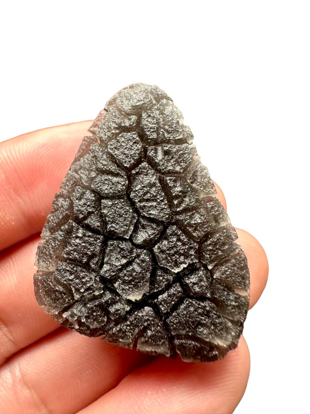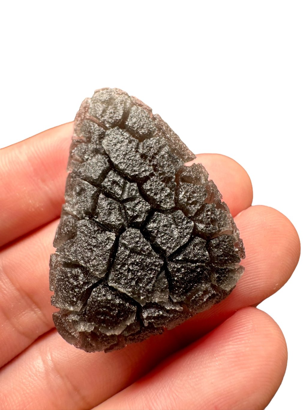 This recently discovered type of obsidian is among the most beautiful obsidians in the world. It is distinguished from other obsidians by its distinctive deep texture, which resembles South Bohemian moldavites (it is very similar to the Besednice Jezkovna). Its sculpture was formed by rapid cooling, surface cracking, and the subsequent slow action of soil acids at the specific site, just like in the case of moldavites. The exact location is currently kept secret to protect the area from diggers and potential landscape devastation. We believe that once the precise discovery site is revealed and scientifically examined, interest in this obsidian with its rare and aesthetic appearance will grow rapidly worldwide – especially due to its significant potential for use in the jewelry industry.