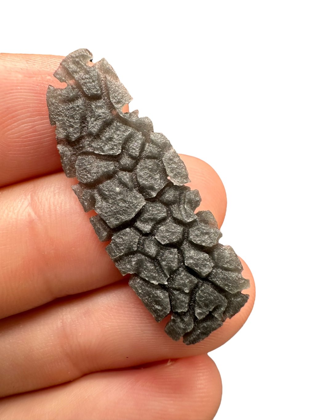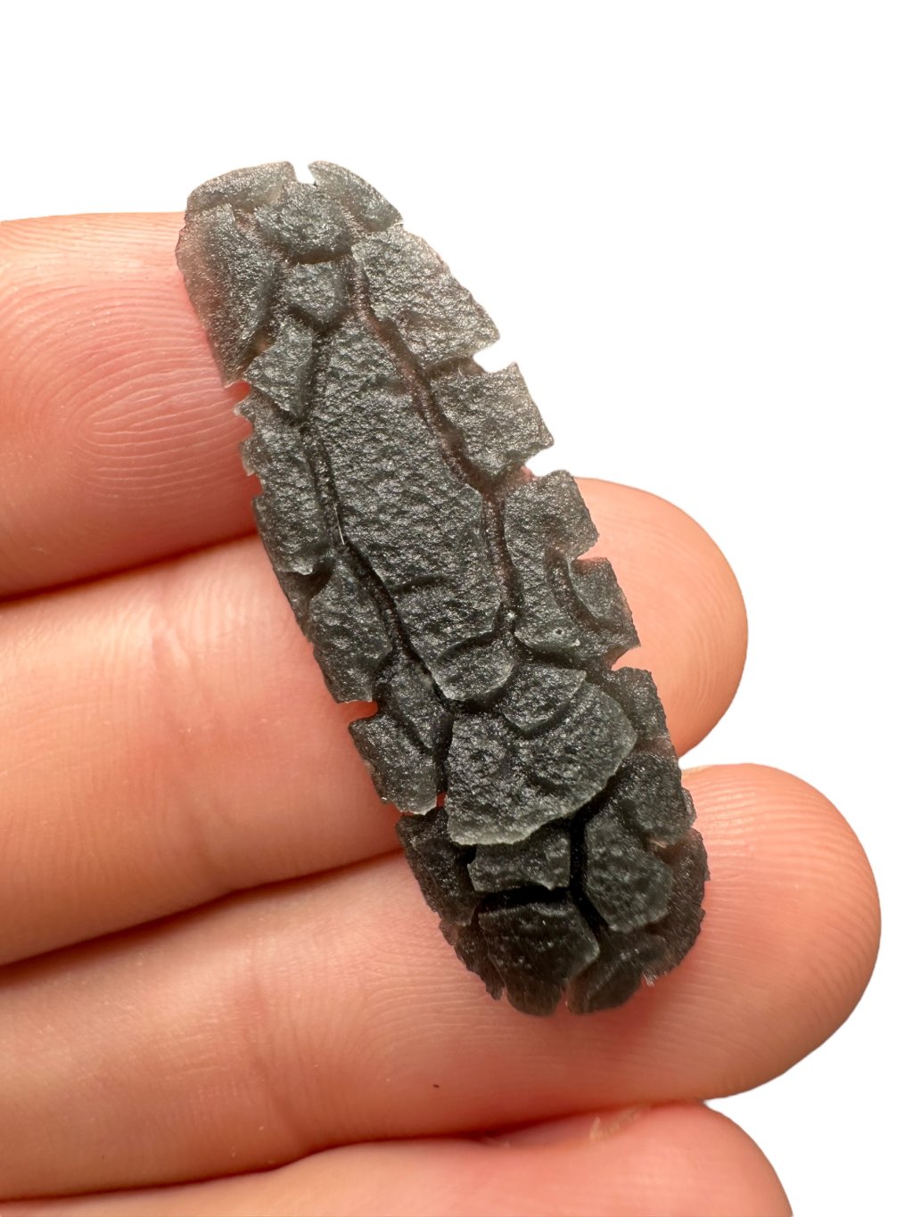 This recently discovered type of obsidian is among the most beautiful obsidians in the world. It is distinguished from other obsidians by its distinctive deep texture, which resembles South Bohemian moldavites (it is very similar to the Besednice Jezkovna). Its sculpture was formed by rapid cooling, surface cracking, and the subsequent slow action of soil acids at the specific site, just like in the case of moldavites. The exact location is currently kept secret to protect the area from diggers and potential landscape devastation. We believe that once the precise discovery site is revealed and scientifically examined, interest in this obsidian with its rare and aesthetic appearance will grow rapidly worldwide – especially due to its significant potential for use in the jewelry industry.