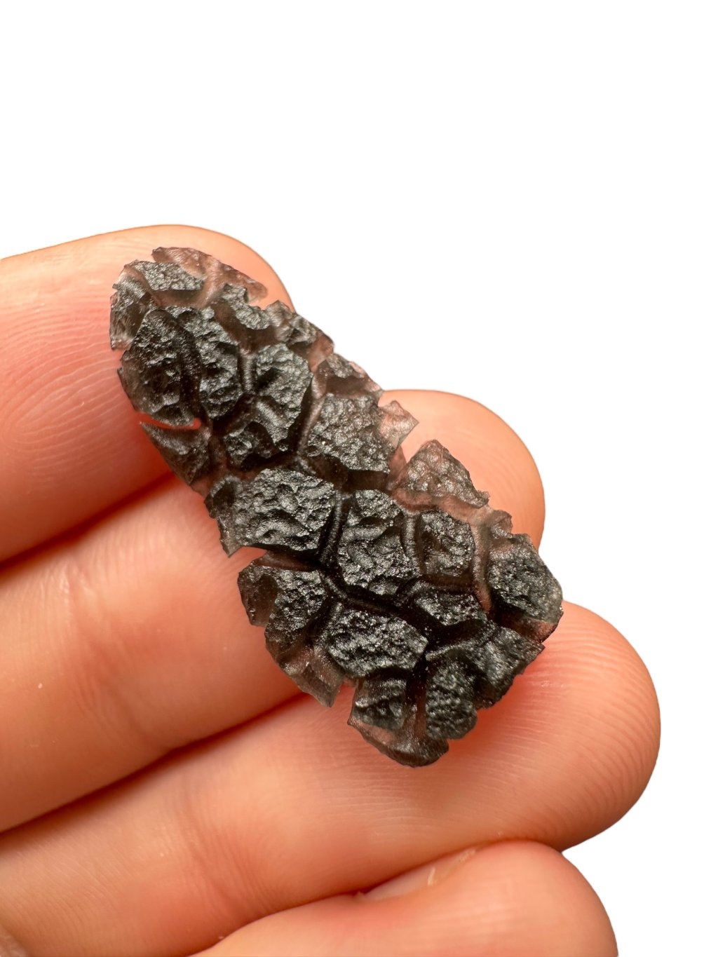 This recently discovered type of obsidian is among the most beautiful obsidians in the world. It is distinguished from other obsidians by its distinctive deep texture, which resembles South Bohemian moldavites (it is very similar to the Besednice Jezkovna). Its sculpture was formed by rapid cooling, surface cracking, and the subsequent slow action of soil acids at the specific site, just like in the case of moldavites. The exact location is currently kept secret to protect the area from diggers and potential landscape devastation. We believe that once the precise discovery site is revealed and scientifically examined, interest in this obsidian with its rare and aesthetic appearance will grow rapidly worldwide – especially due to its significant potential for use in the jewelry industry.