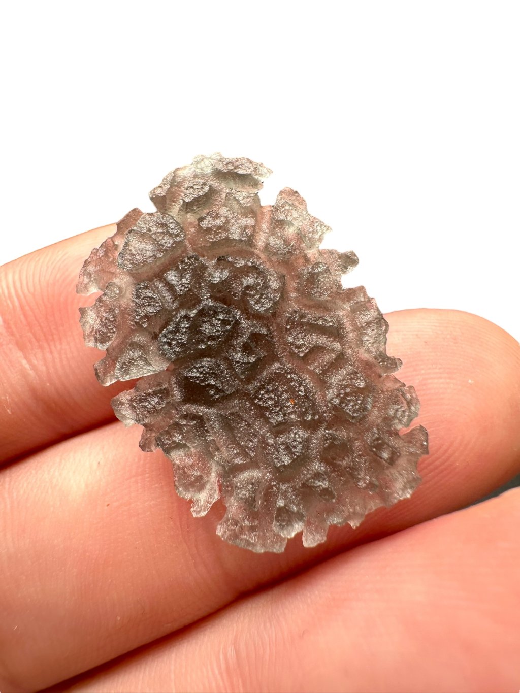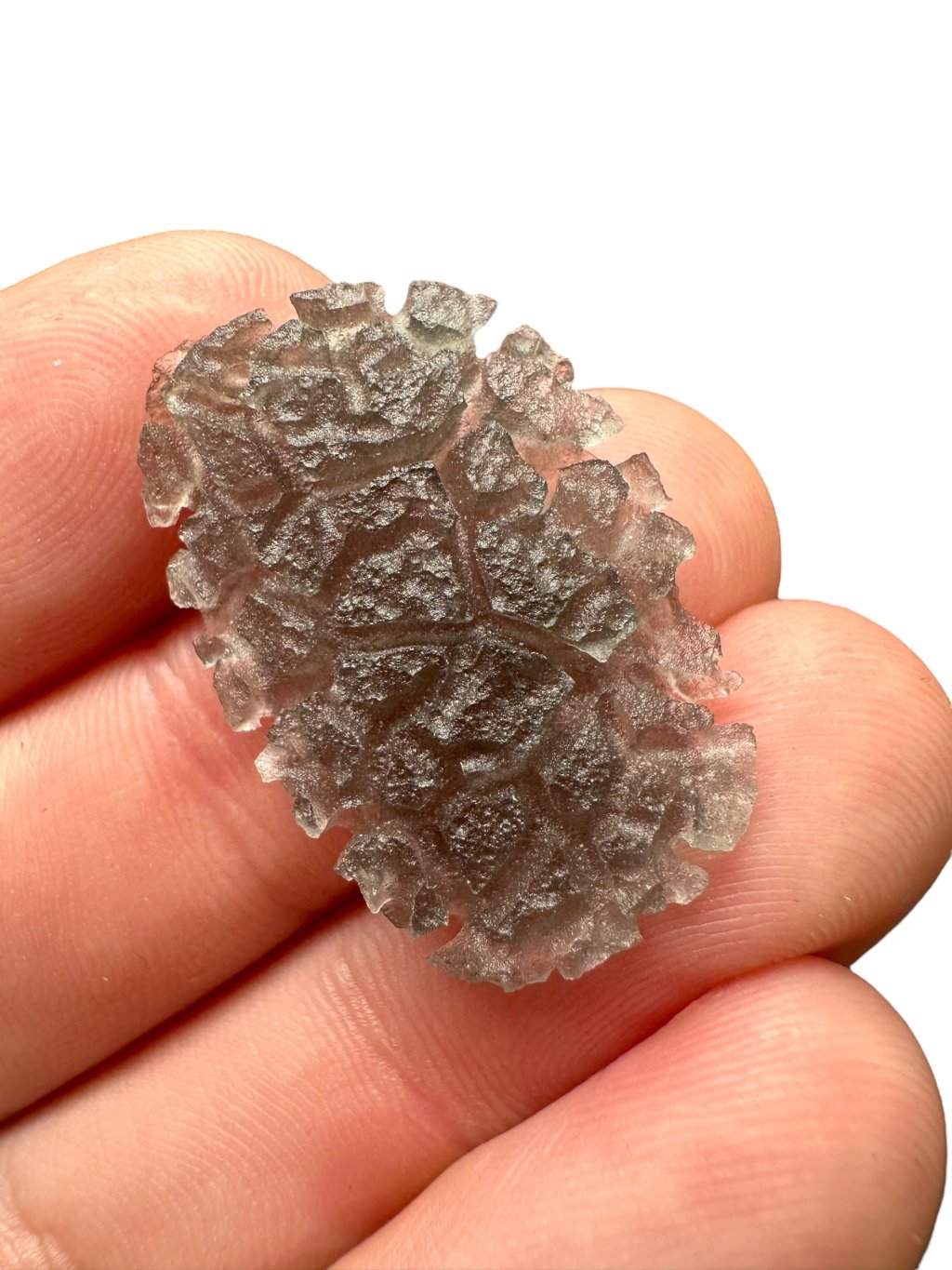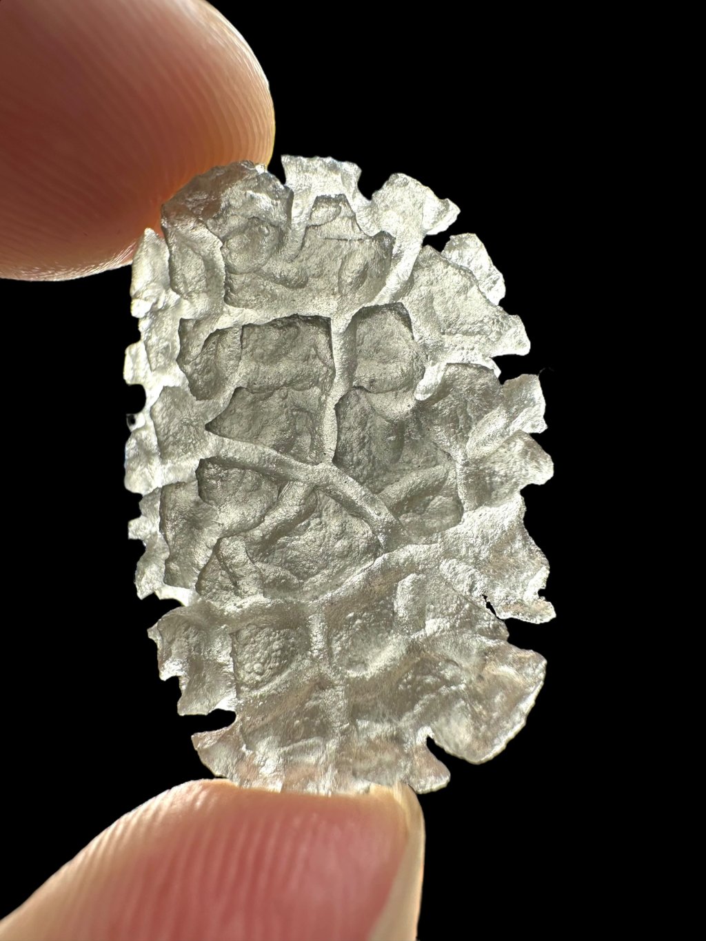 This recently discovered type of obsidian is among the most beautiful obsidians in the world. It is distinguished from other obsidians by its distinctive deep texture, which resembles South Bohemian moldavites (it is very similar to the Besednice Jezkovna). Its sculpture was formed by rapid cooling, surface cracking, and the subsequent slow action of soil acids at the specific site, just like in the case of moldavites. The exact location is currently kept secret to protect the area from diggers and potential landscape devastation. We believe that once the precise discovery site is revealed and scientifically examined, interest in this obsidian with its rare and aesthetic appearance will grow rapidly worldwide – especially due to its significant potential for use in the jewelry industry.