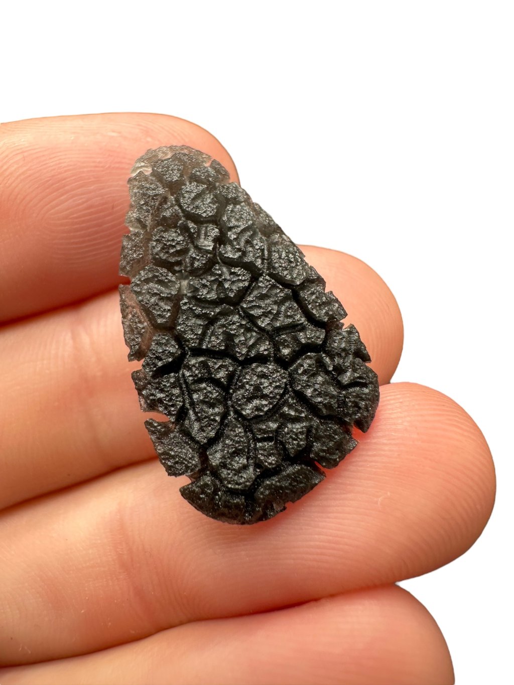 This recently discovered type of obsidian is among the most beautiful obsidians in the world. It is distinguished from other obsidians by its distinctive deep texture, which resembles South Bohemian moldavites (it is very similar to the Besednice Jezkovna). Its sculpture was formed by rapid cooling, surface cracking, and the subsequent slow action of soil acids at the specific site, just like in the case of moldavites. The exact location is currently kept secret to protect the area from diggers and potential landscape devastation. We believe that once the precise discovery site is revealed and scientifically examined, interest in this obsidian with its rare and aesthetic appearance will grow rapidly worldwide – especially due to its significant potential for use in the jewelry industry.