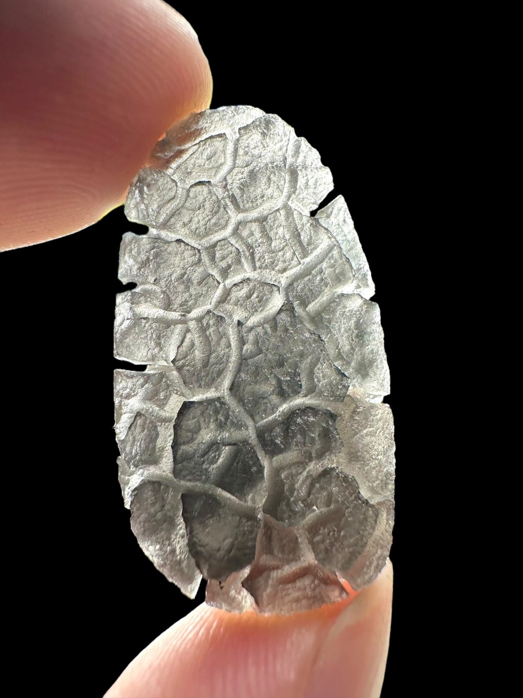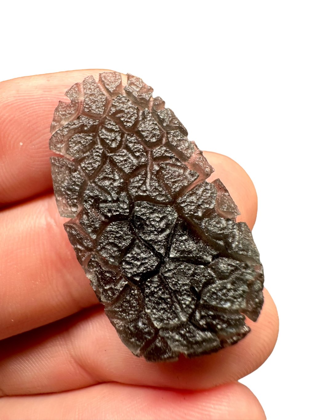 This recently discovered type of obsidian is among the most beautiful obsidians in the world. It is distinguished from other obsidians by its distinctive deep texture, which resembles South Bohemian moldavites (it is very similar to the Besednice Jezkovna). Its sculpture was formed by rapid cooling, surface cracking, and the subsequent slow action of soil acids at the specific site, just like in the case of moldavites. The exact location is currently kept secret to protect the area from diggers and potential landscape devastation. We believe that once the precise discovery site is revealed and scientifically examined, interest in this obsidian with its rare and aesthetic appearance will grow rapidly worldwide – especially due to its significant potential for use in the jewelry industry.