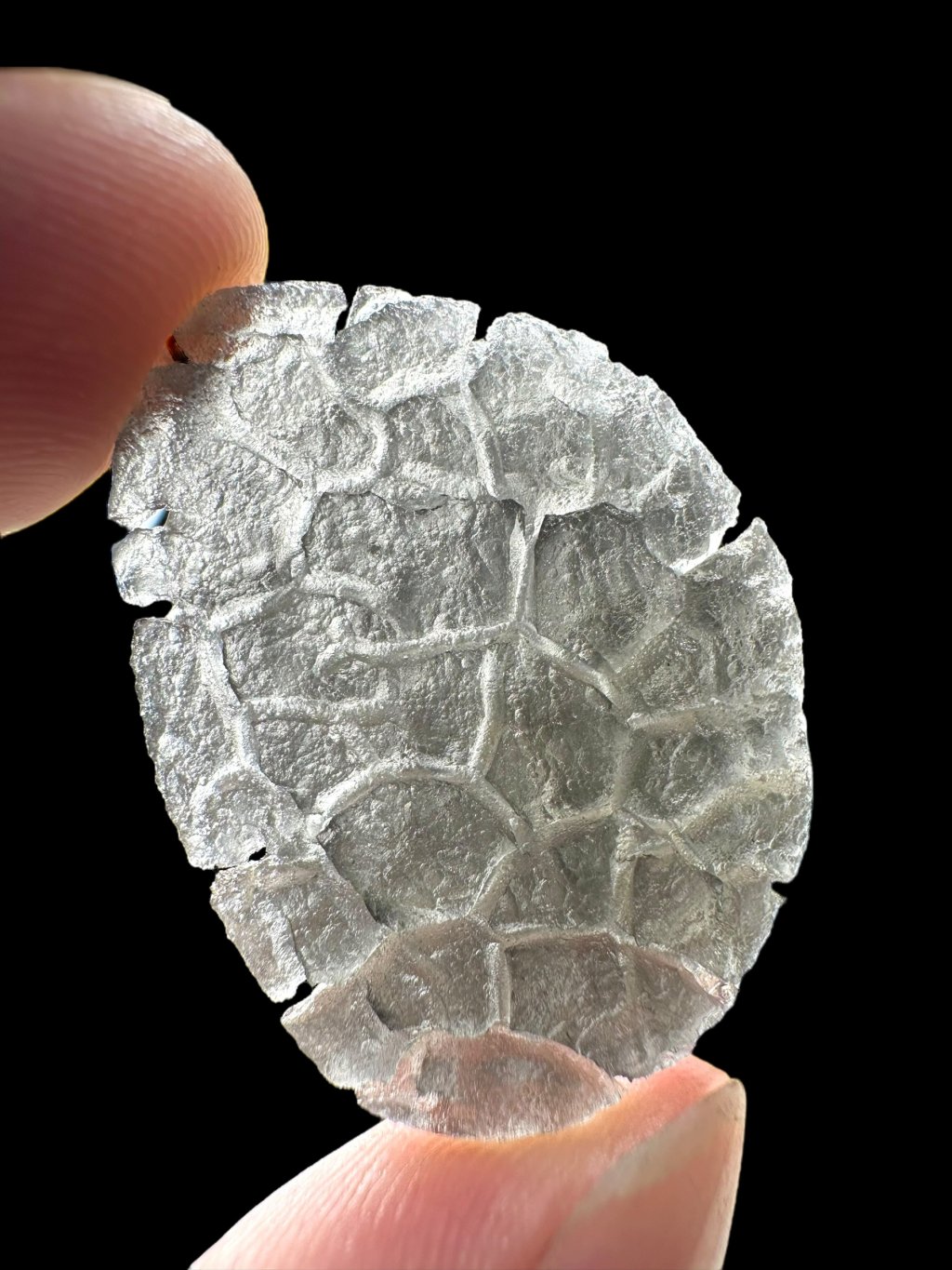 This recently discovered type of obsidian is among the most beautiful obsidians in the world. It is distinguished from other obsidians by its distinctive deep texture, which resembles South Bohemian moldavites (it is very similar to the Besednice Jezkovna). Its sculpture was formed by rapid cooling, surface cracking, and the subsequent slow action of soil acids at the specific site, just like in the case of moldavites. The exact location is currently kept secret to protect the area from diggers and potential landscape devastation. We believe that once the precise discovery site is revealed and scientifically examined, interest in this obsidian with its rare and aesthetic appearance will grow rapidly worldwide – especially due to its significant potential for use in the jewelry industry.