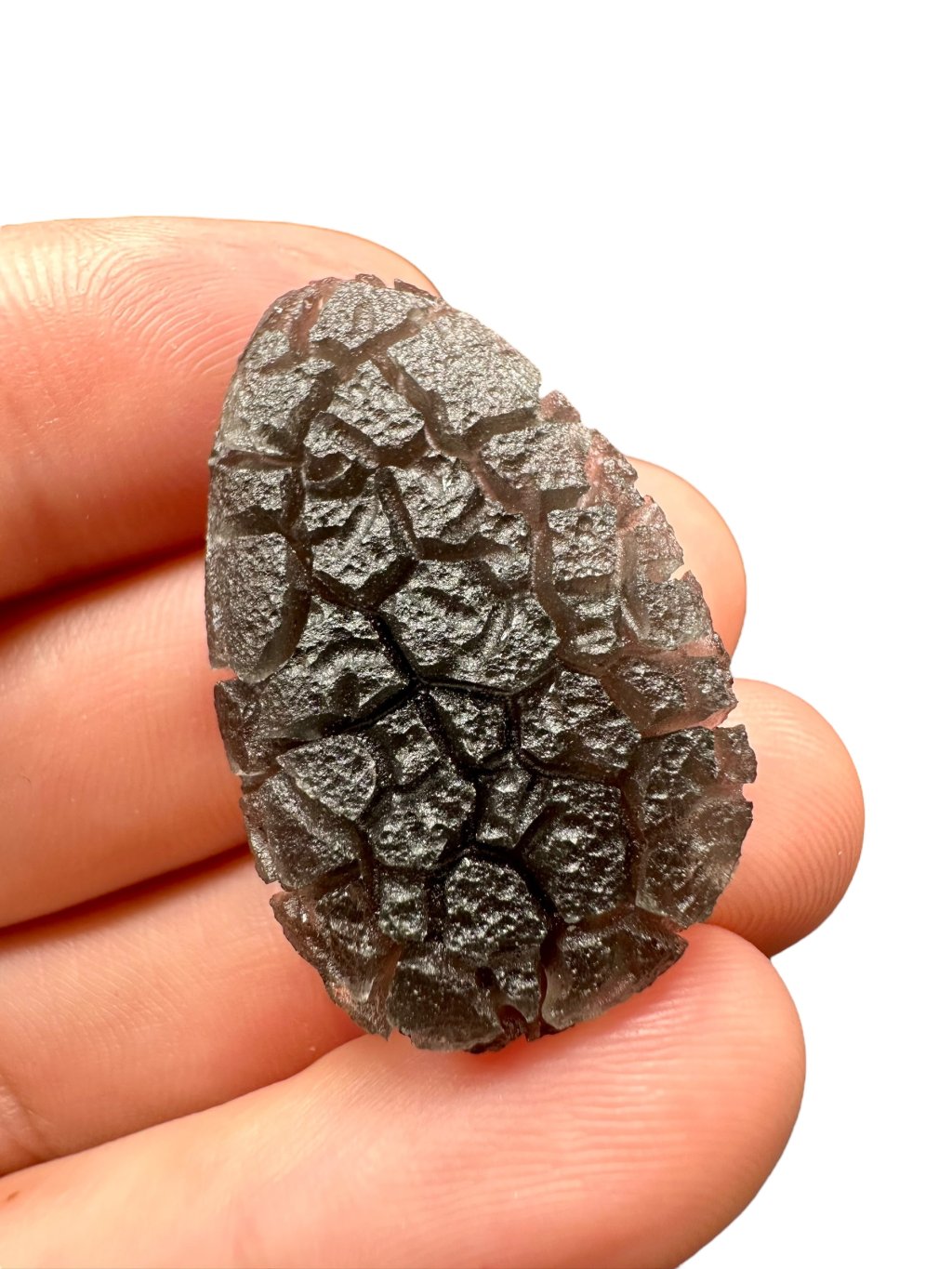This recently discovered type of obsidian is among the most beautiful obsidians in the world. It is distinguished from other obsidians by its distinctive deep texture, which resembles South Bohemian moldavites (it is very similar to the Besednice Jezkovna). Its sculpture was formed by rapid cooling, surface cracking, and the subsequent slow action of soil acids at the specific site, just like in the case of moldavites. The exact location is currently kept secret to protect the area from diggers and potential landscape devastation. We believe that once the precise discovery site is revealed and scientifically examined, interest in this obsidian with its rare and aesthetic appearance will grow rapidly worldwide – especially due to its significant potential for use in the jewelry industry.